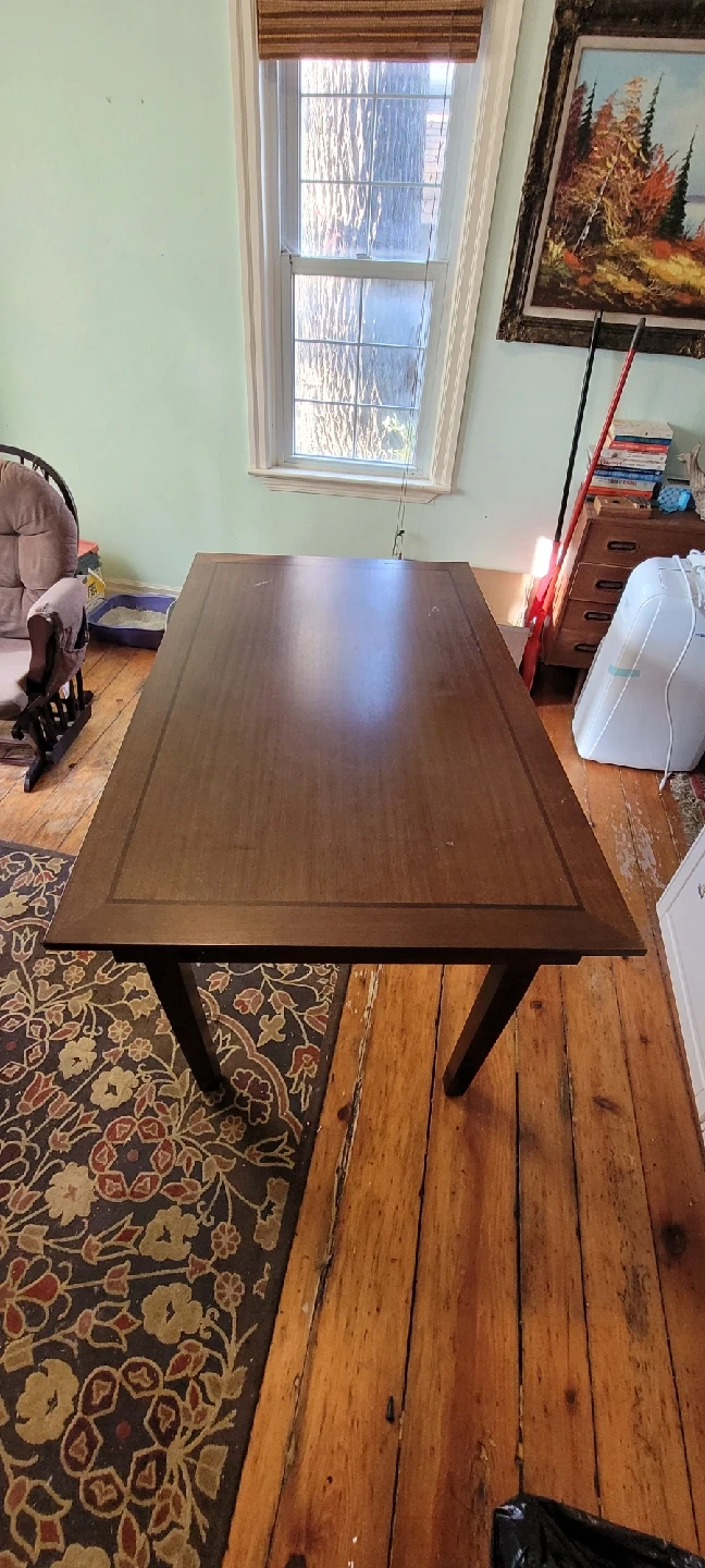 10Selling a solid wooden dining table. It's in good condition and measures 5 feet in length, 3 feet in width, and stands 2.5 feet tall. Perfect for a family or small gatherings, and easy to assemble. $350 O.B.O. Can deliver for extra $50.