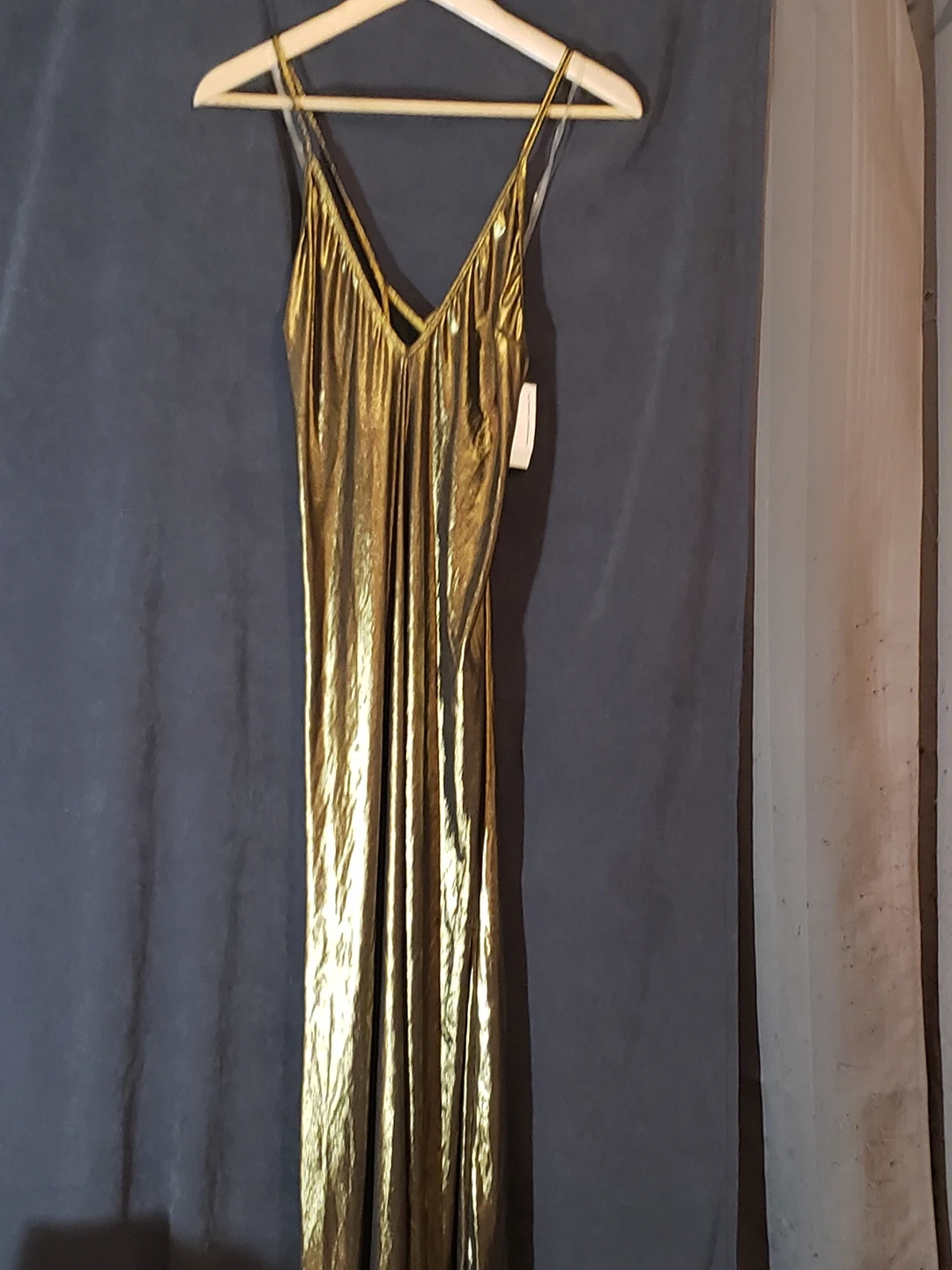 Floor length, stunning slinky fabric, never worn. 56" length from hanger