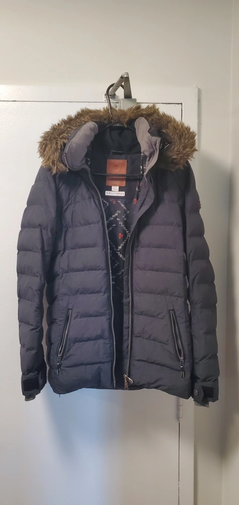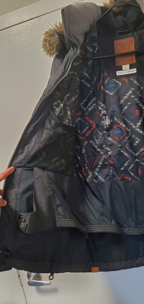 Warm, gray Roxy winter coat with lots of internal, external, and sleeve pockets. Keeps you warm and dry all fall and winter.