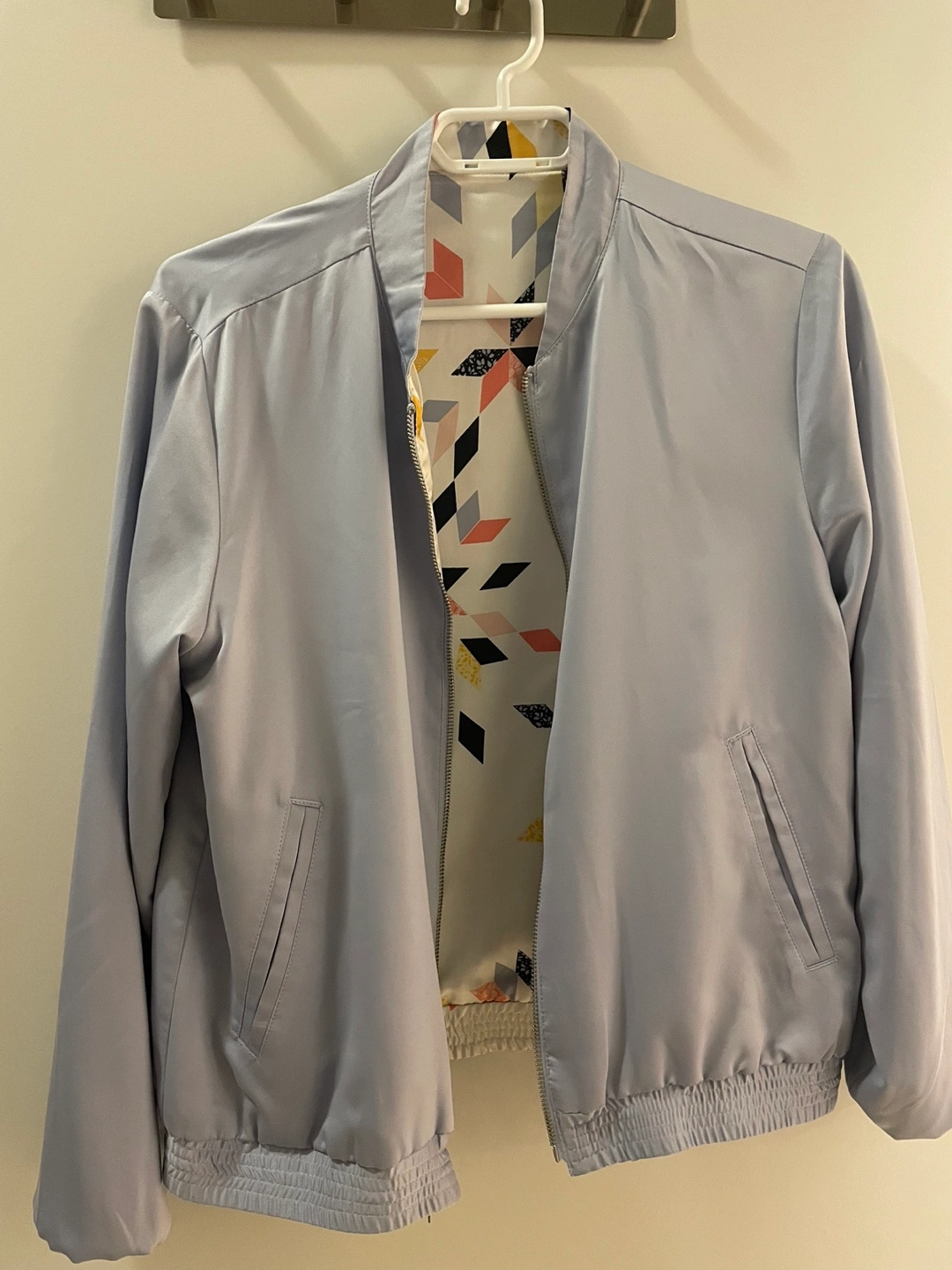 Buy & SellReversible Women’s Bomber JacketReversible Women’s Bomber Jacket$9Reversible women’s bomber jacket. Light blue and patterned. Purchased from Gap. Worn once. Size MWHERE TO MEET25 Bathurst StView MapSELLERLauraCityPlace3511 reviews3 chats·2 favorites·244 viewsSEND CHAT TO SELLERHi Laura! I’m interested in your listing.Hi Laura! I’m interested in your listing.Get the Karrot app to chatSign In to chat