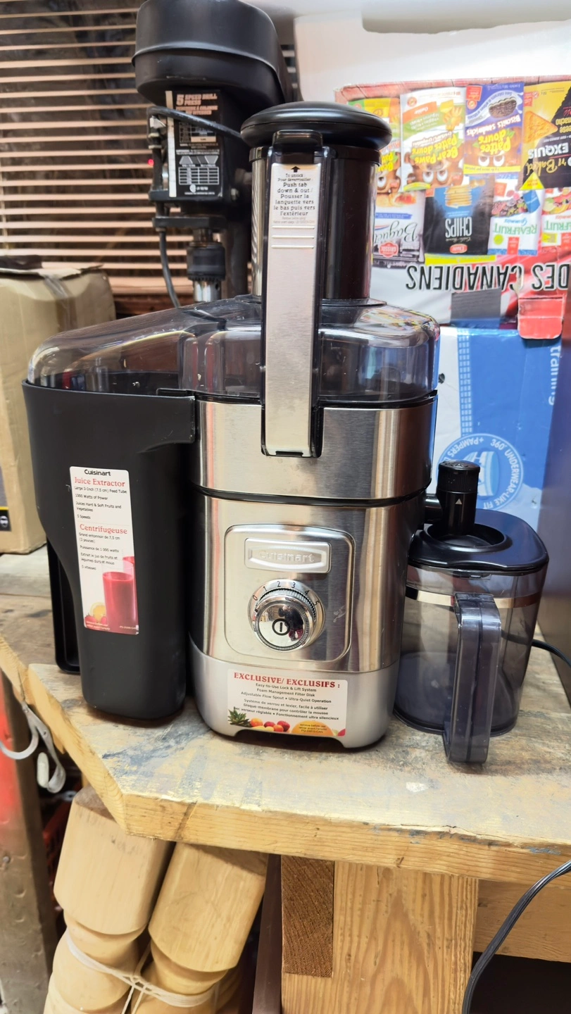 18Stainless steel juicer with pulp container and a spout. Used less than a handful of times. No missing parts.