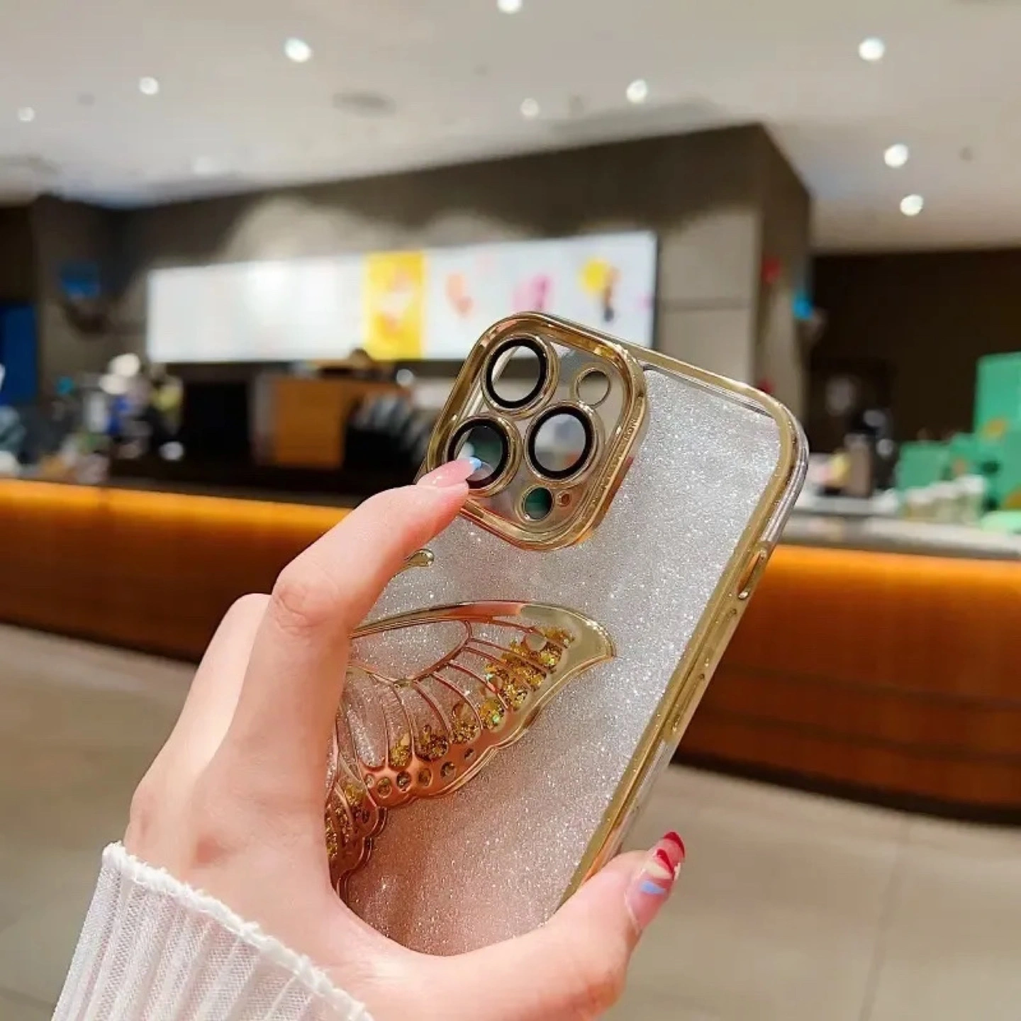 Sparkly glitter phone case with a butterfly design. Fits iPhone 14, pro, plus, promax, iPhone 15,plus, pro, promax . Comes in a variety of colours.