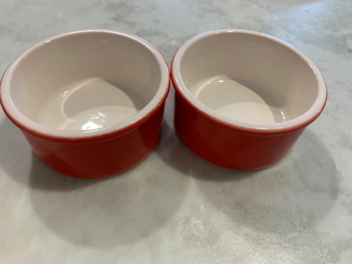48Set of 2 orange ramekins. Perfect for desserts or individual servings. They are in good condition.