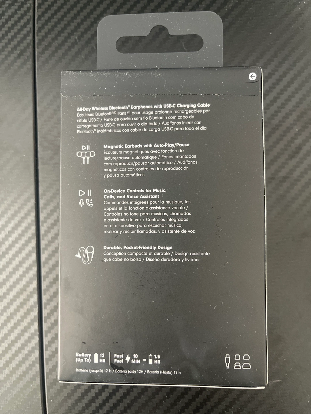 Brand new in box. All-day wireless earphones with USB-C charging cable. Magnetic earbuds with auto-play/pause. Device controls for music, calls, voice assistant. Durable, pocket-friendly design.