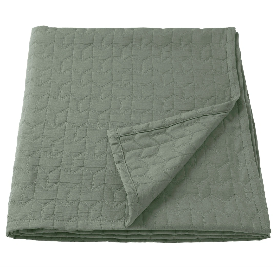 Selling king size bedspread in a lovely sage color. Have only used it during the summer months and washed very carefully. There is some pilling in the bedspread.
