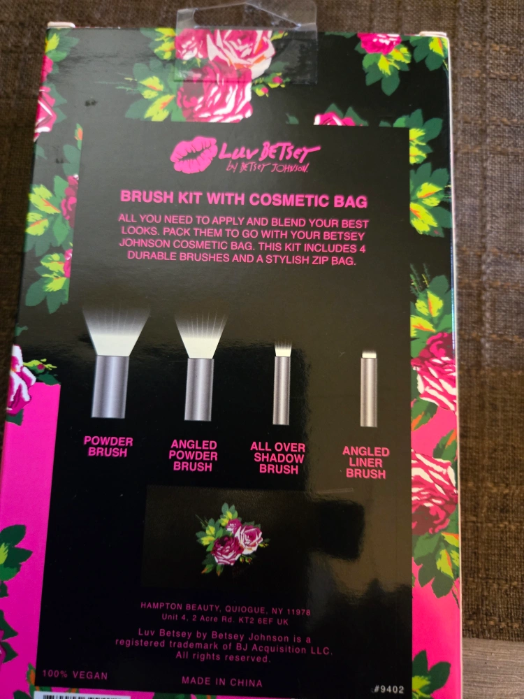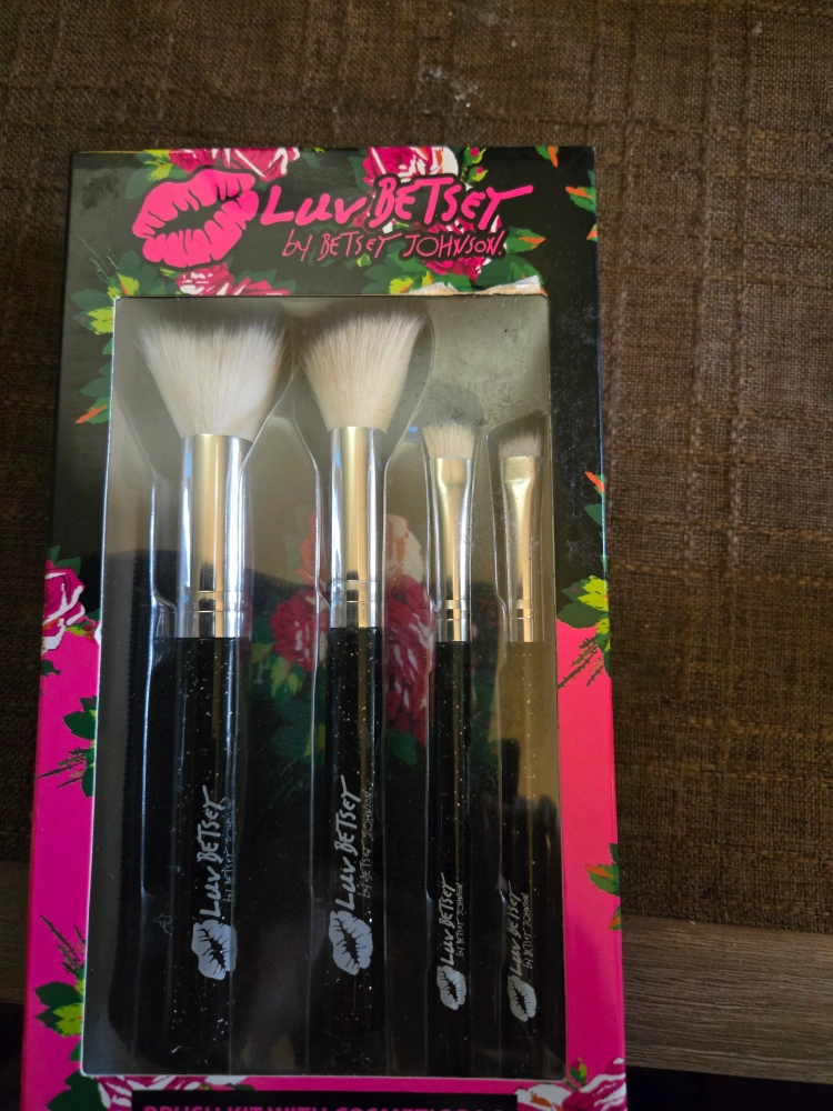 New brush kit with cosmetic bag. Includes four brushes: powder, angled powder, all-over shadow, and angled liner.