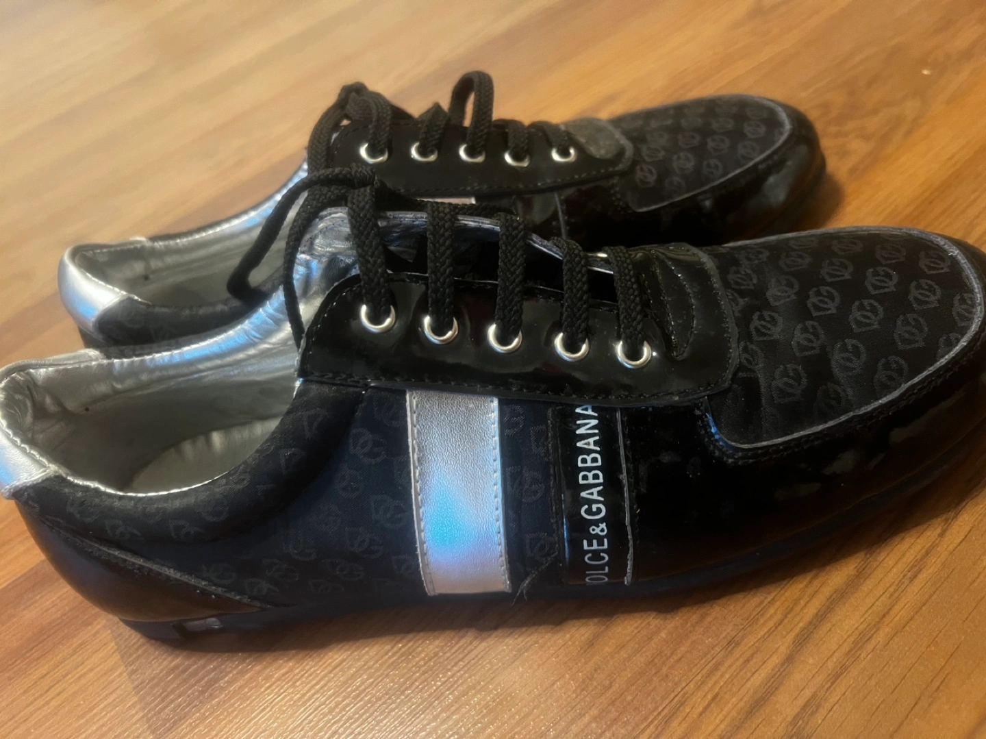 1000+Black patent leather sneakers with silver accents and a DG pattern. Quick sale!! Please know what your size US these are a 46 Pick up only. First come first receives Keele and Eglinton Free hat when pick up