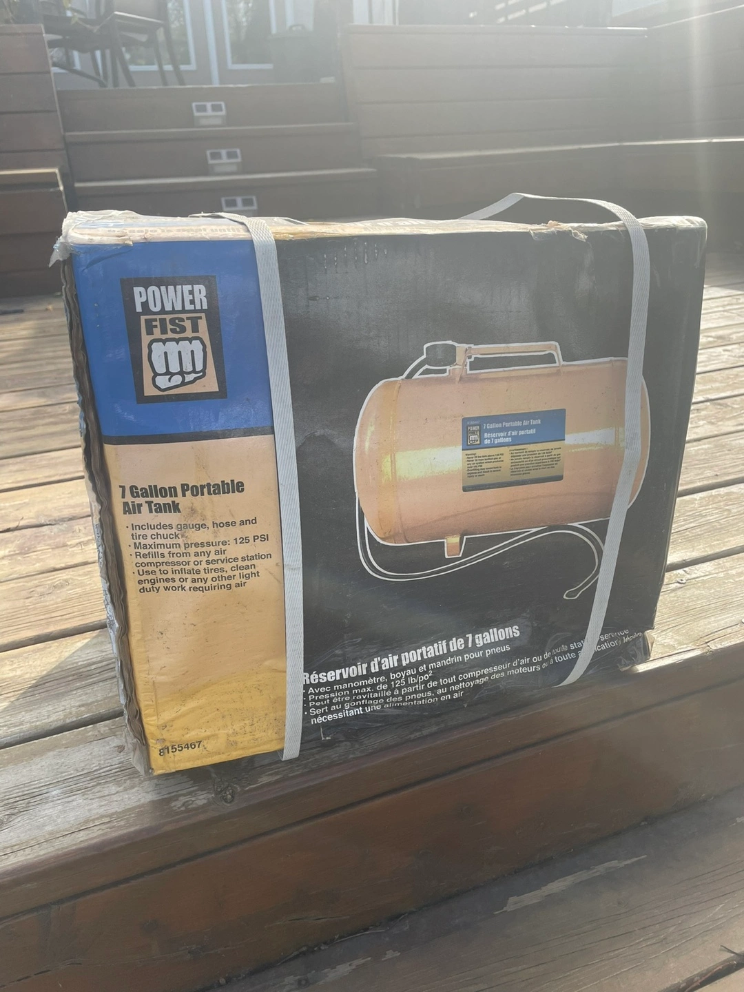 Includes gauge, hose, and tire chuck. Maximum pressure: 125 PSI. Refills from any air compressor or service station. Use to inflate tires, clean engines or any other light duty work requiring air.