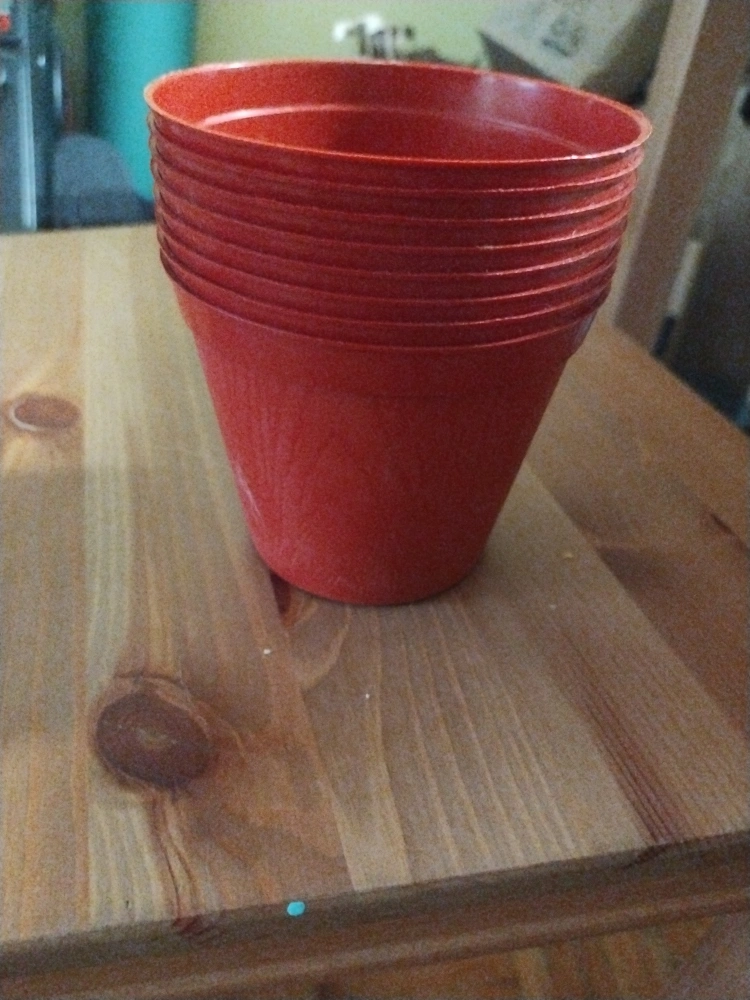 1000+Set of red plastic plant pots, ideal for starting seeds or for small plants. 8 of them