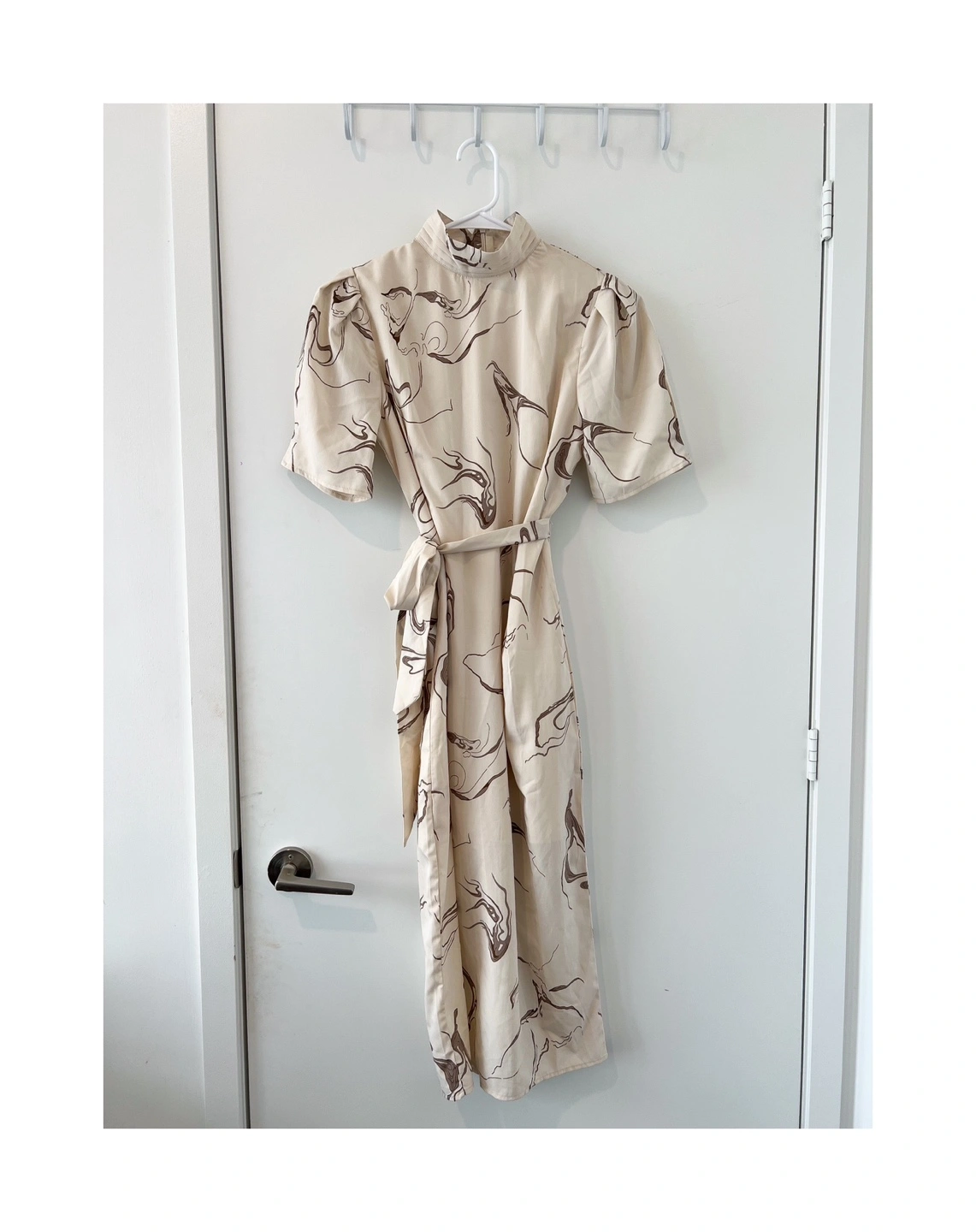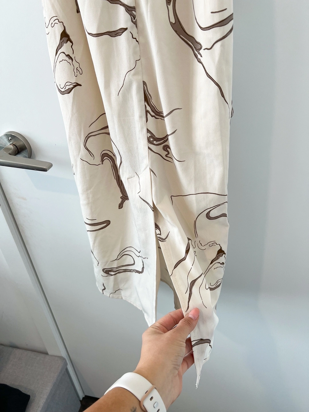 Pretty cream&brown midi dress from Oak + Fort with marble print.