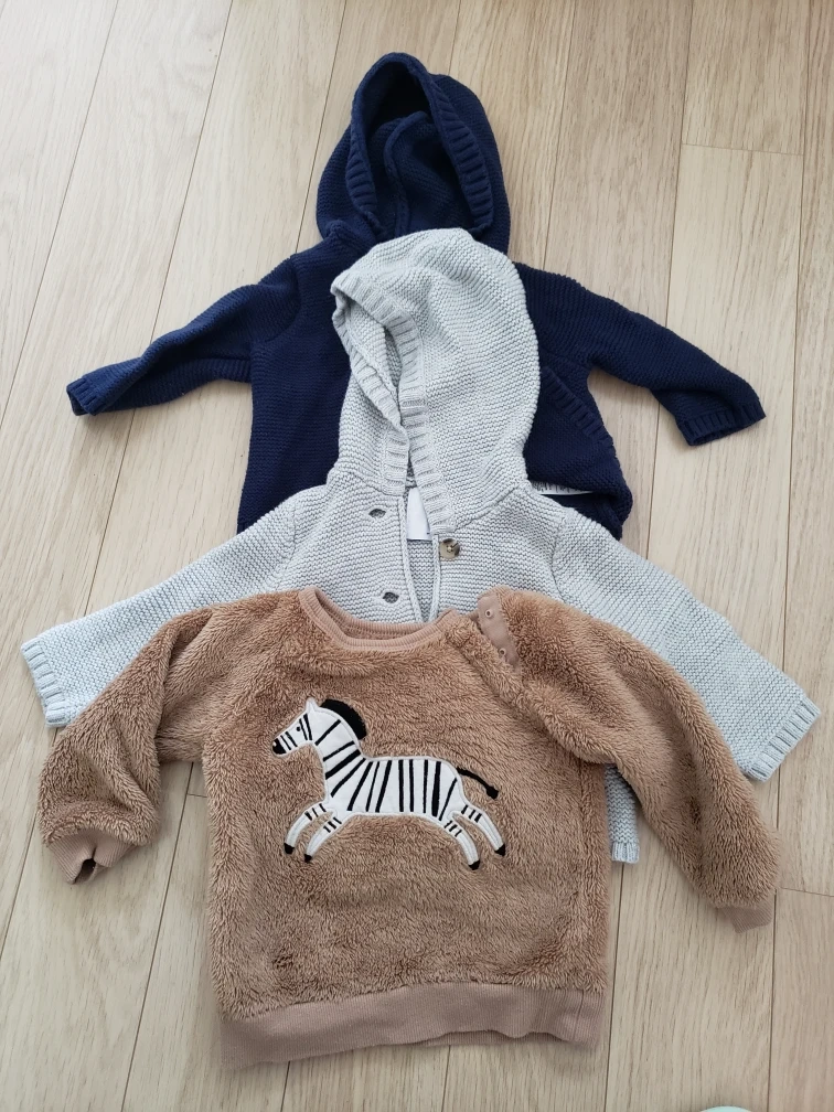 80- 3-6 months: 3 long pants - 6-12 months: 3 sweaters, 3 long sleeves, 6 long pants. - All in great condition - They are from different brands: Carter's, Old Navy, George, Pekkle - Pet-free, smoke-free home - $10 for all. Cash only - Pick up location: Markham Civic Centre - 101 Town Centre Boulevard, Markham, Ontario, L3R 9W3