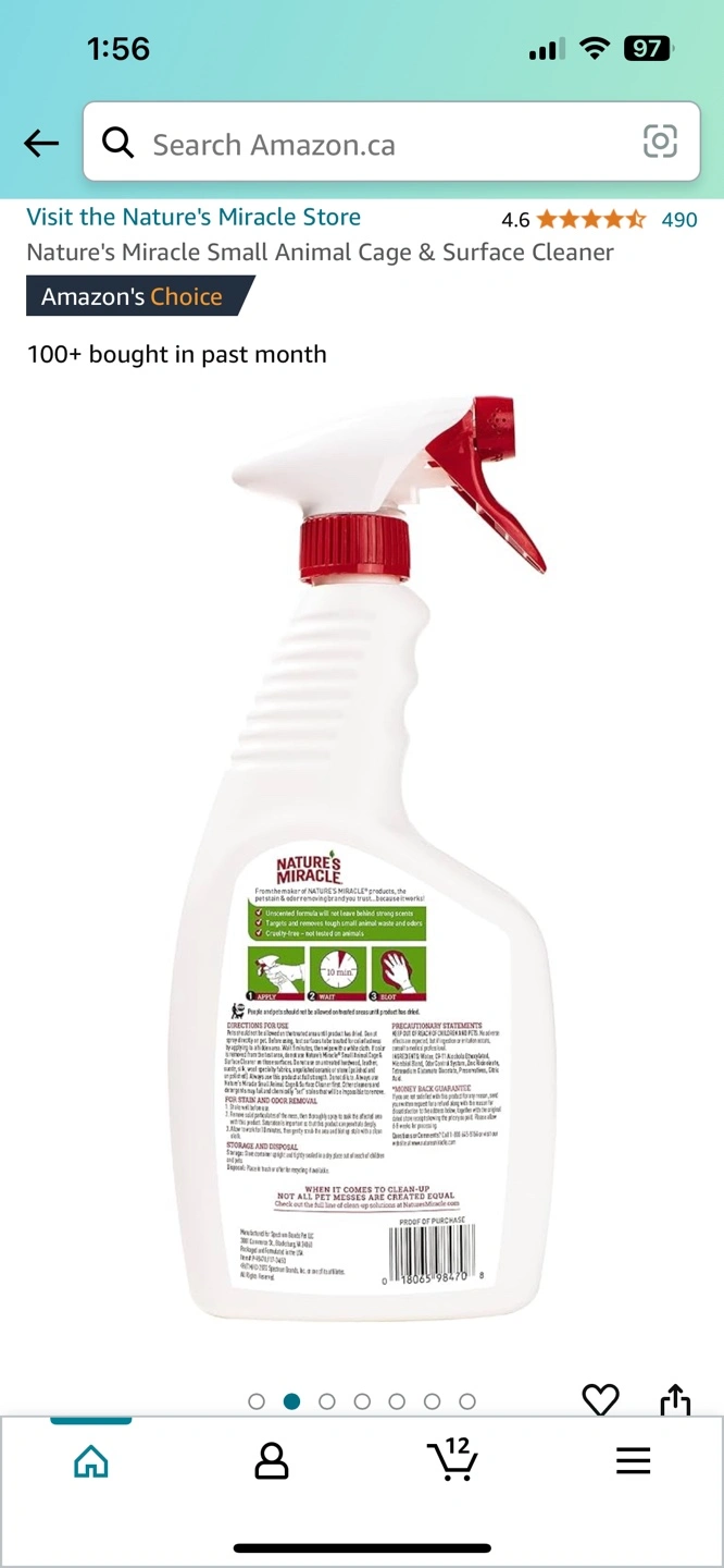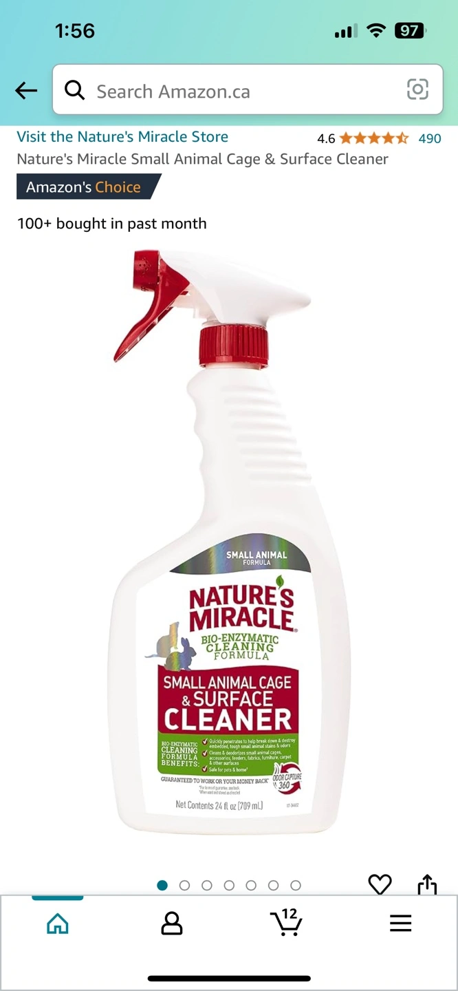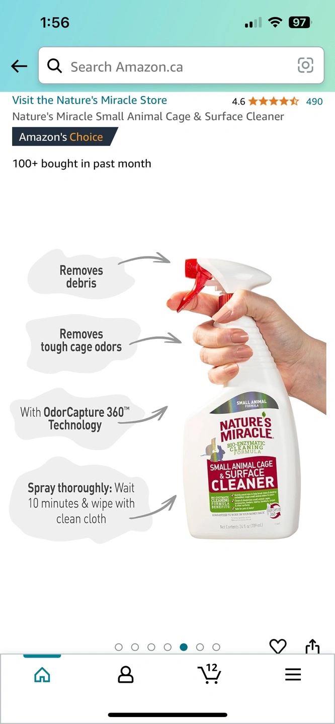 98New never used Bio-enzymatic cleaning formula. Removes debris and tough odours. Cleans bird cages, accessories, feeders, fabrics, furniture, carpet and other surfaces. With OdorCapture 360 technology. Spray thoroughly. Wait 10 minutes and wipe with a clean cloth.