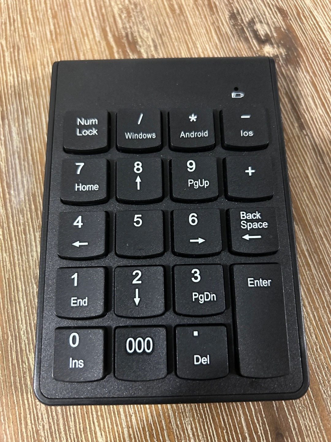 Bluetooth Black wireless numeric keypad with Android and Windows keys. Includes one AAA battery. Good to use with laptop 💻