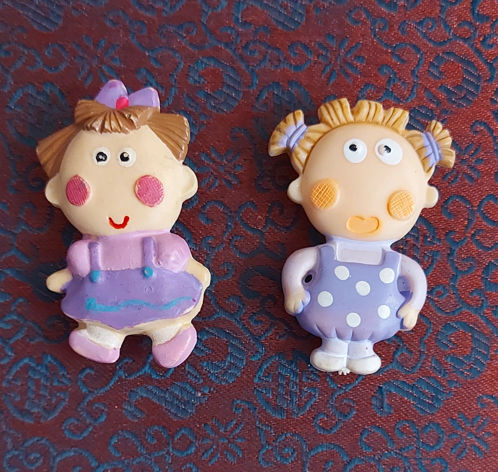 Two vintage girl hair clips. Both have a plastic construction with metal clips.