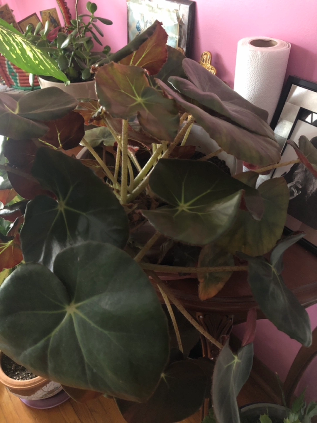 522Large, healthy Rex Begonia plant with many leaves. In a brown pot.
