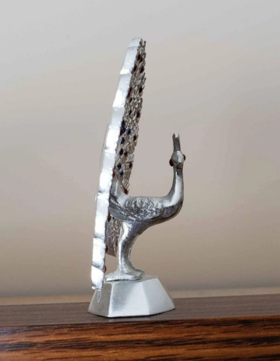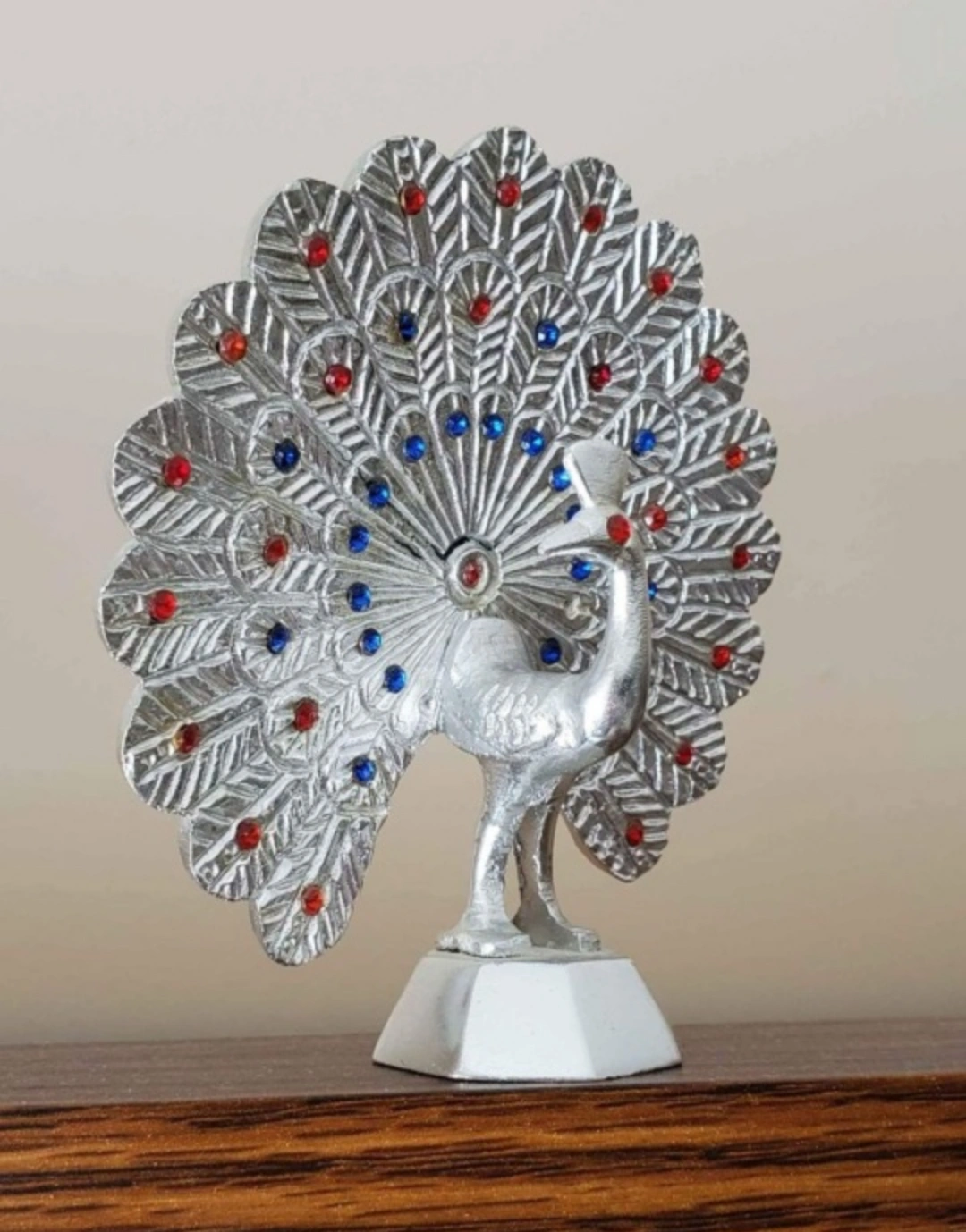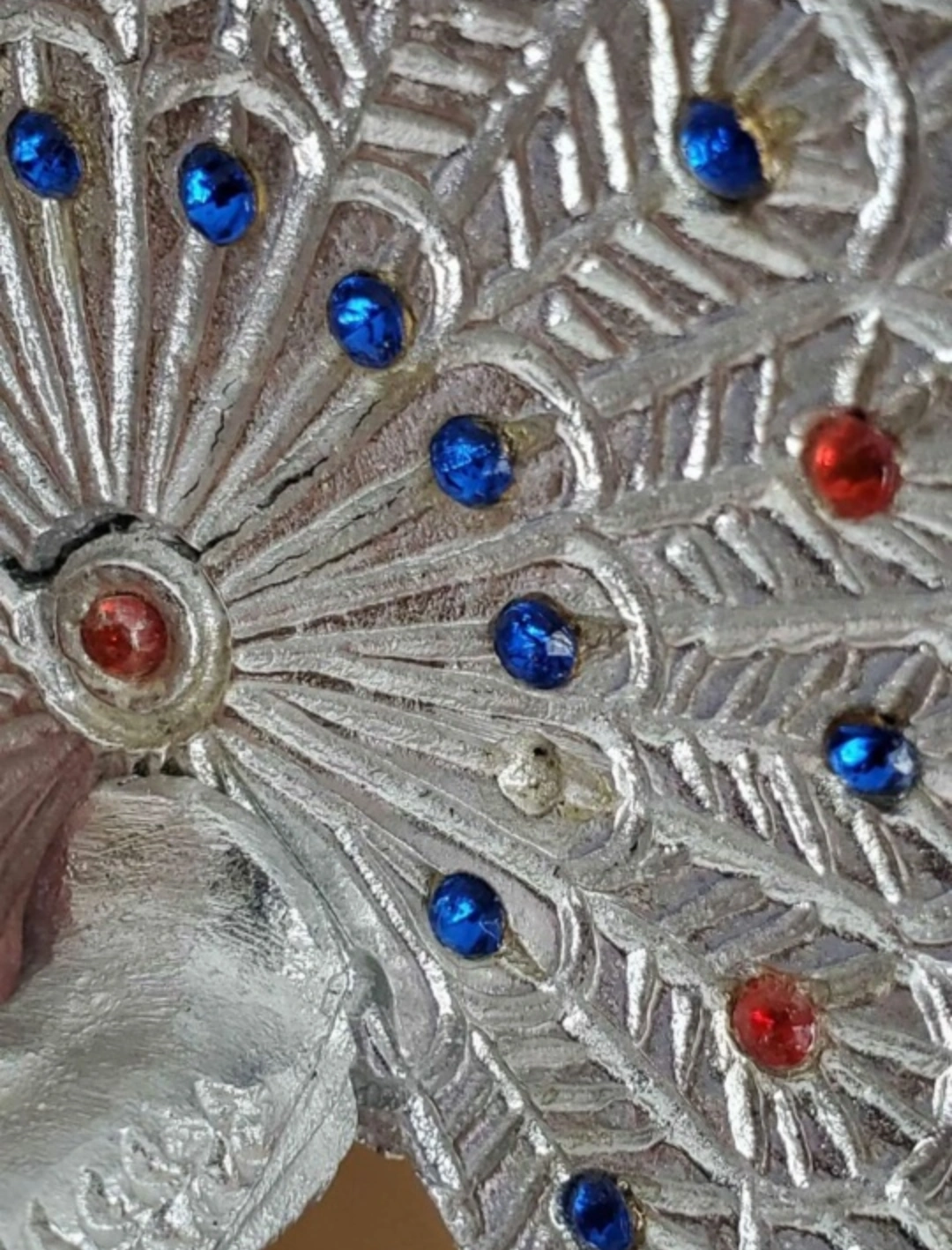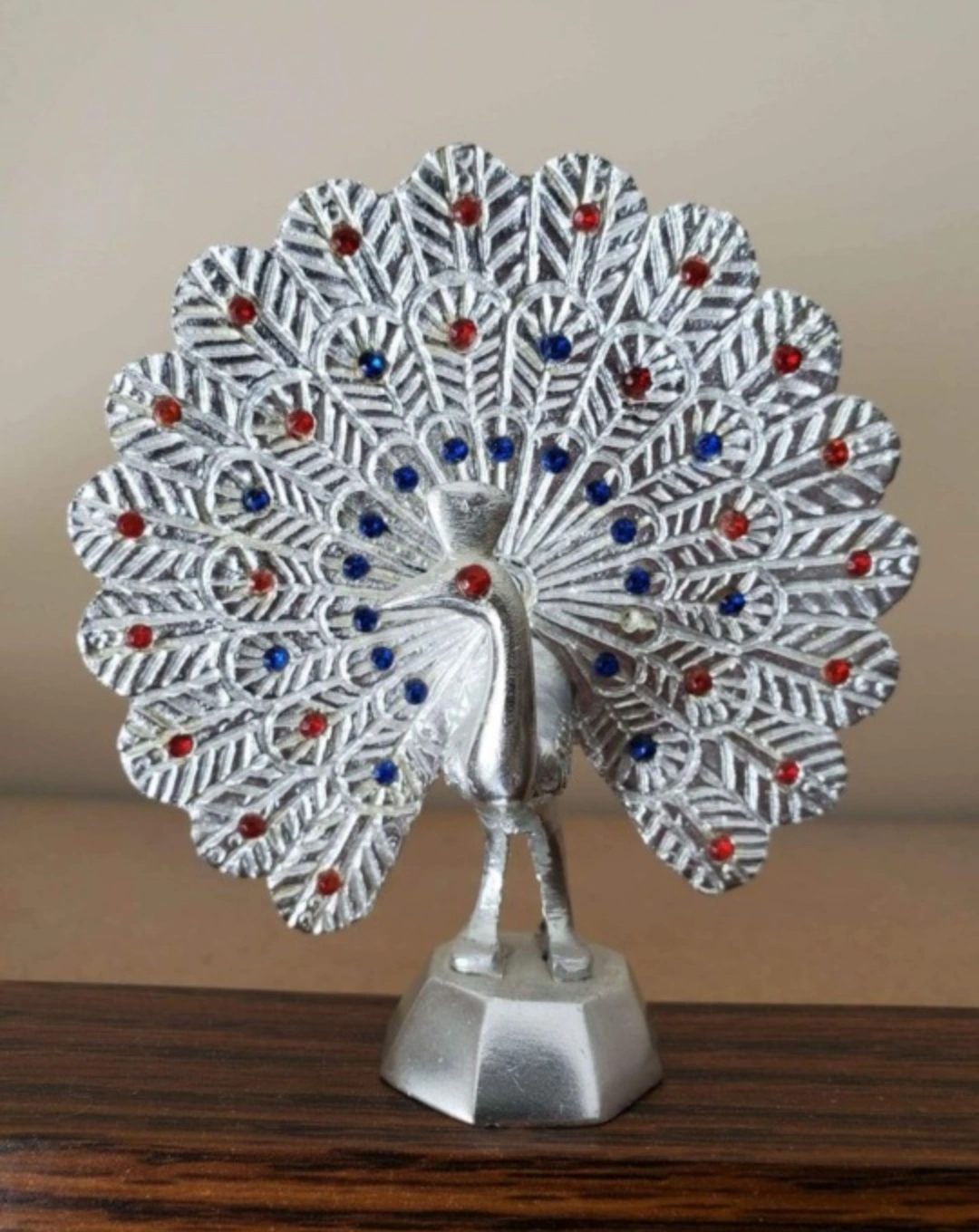 This adorable little peacock was brought back from India when I was a child. I've had it at least 35 years, and looking to give it a new home. It's in good shape for its age, just missing one small jewel (see photos for condition). It measures 4" tall x 3.5" wide.