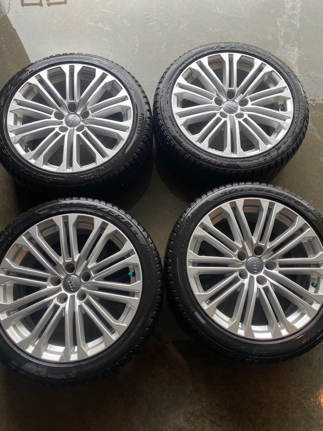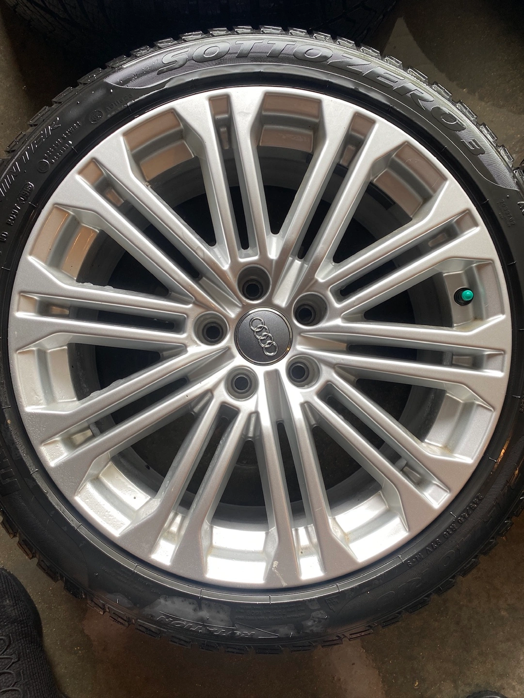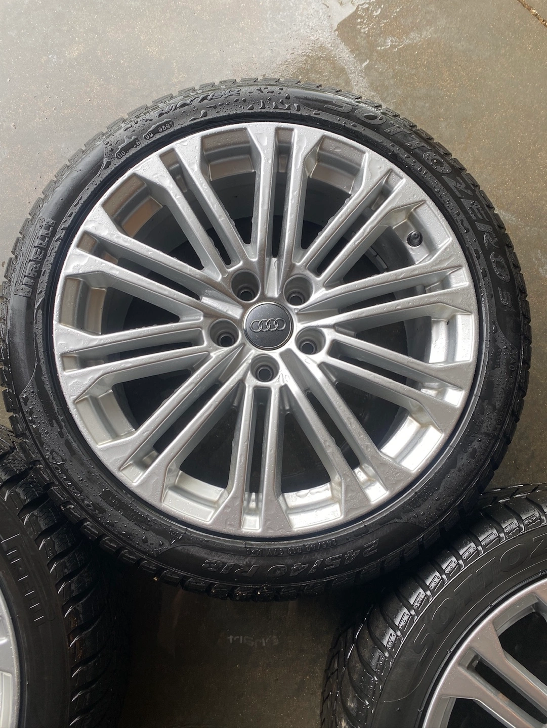 full set of oem 18" 10 double spoke wheels in fairly good condition. these were on a 2018 Audi s5 but fit various other years/models. Wheel Part Number P/N 8W0601025EE Tires Pirelli Sottozero 3 245/45 R 18 2 have good life left and 2 have maybe a winter or 2 left maybe?