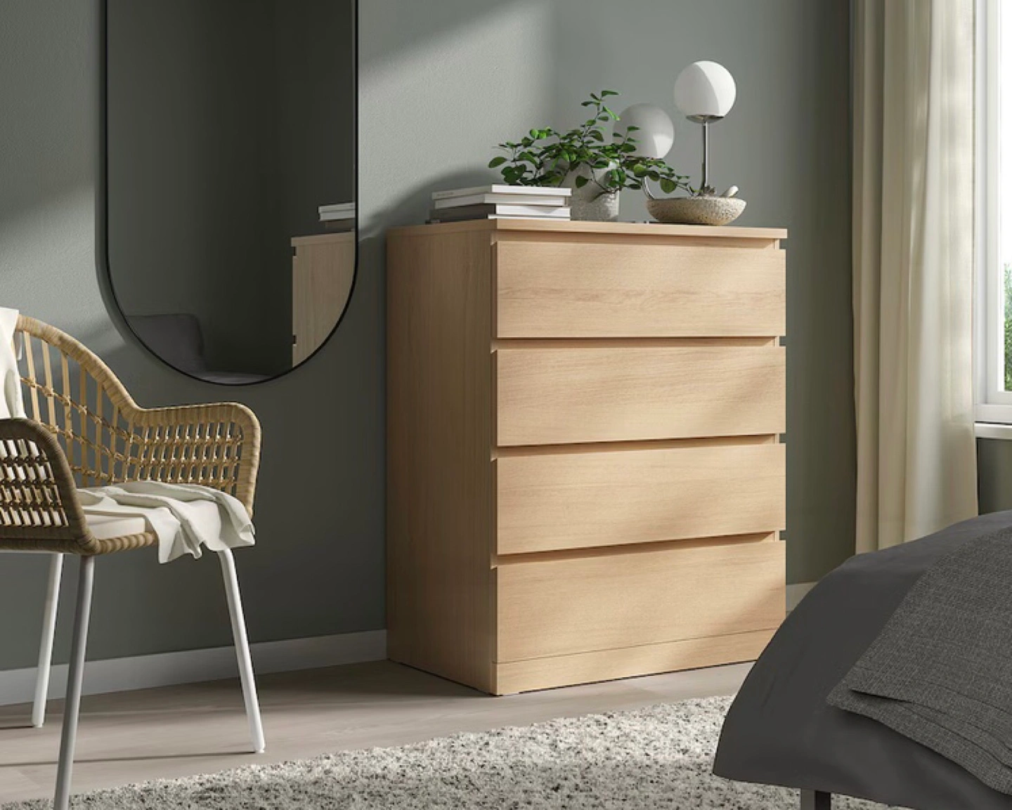 Dark brown four-drawer dresser. Comes in two boxes and have has never been unpacked. $224 (including taxes) brand new.