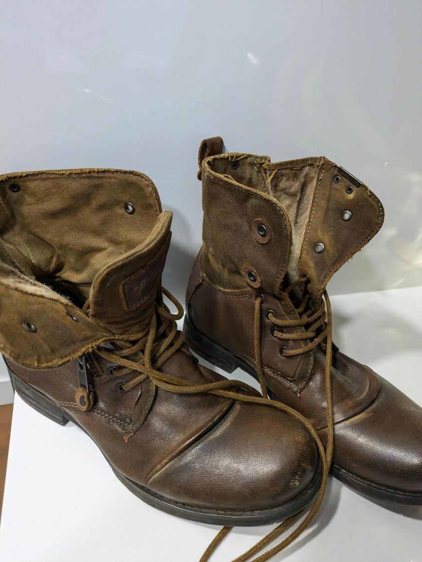 Buy & SellMen's Bunker BootsMen's Bunker Boots$40Brown leather boots with a zipper on the side. Canvas on top. Lace-up closure.ConditionLike newSize7BrandBunkerWHERE TO MEET550 Taylor StreetView MapSELLERCarloDowntown422 reviews1 chats·0 favorites·41 views