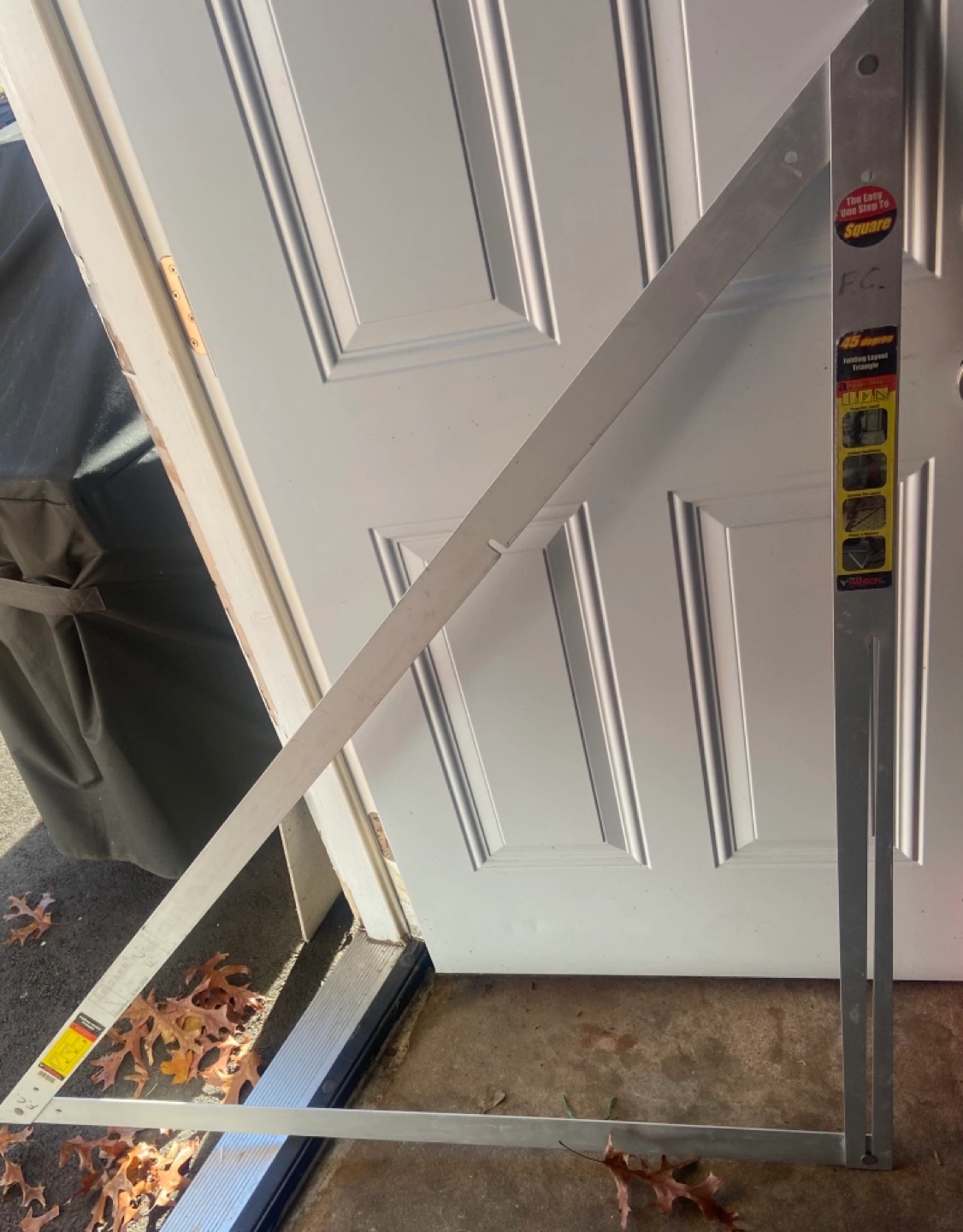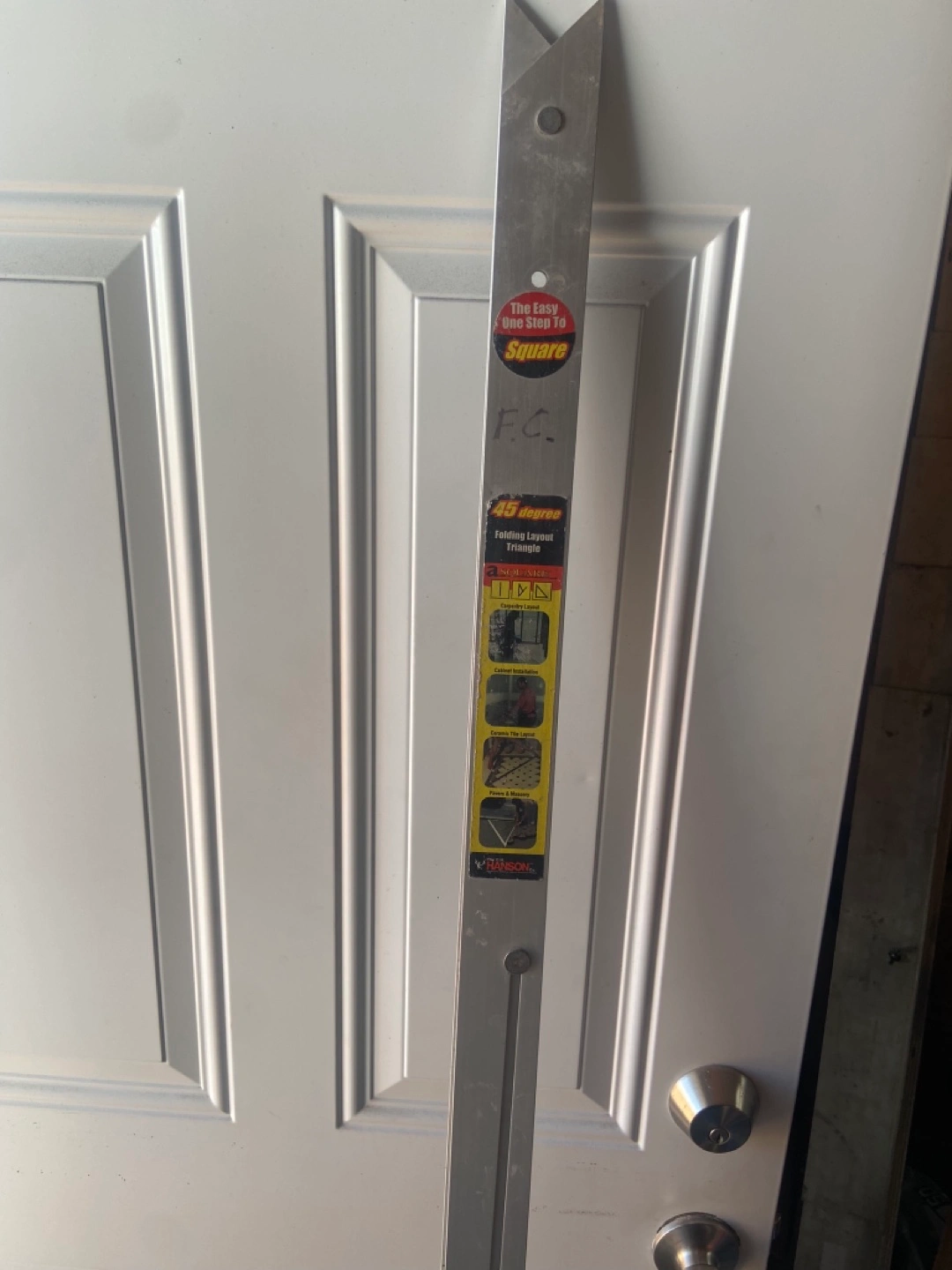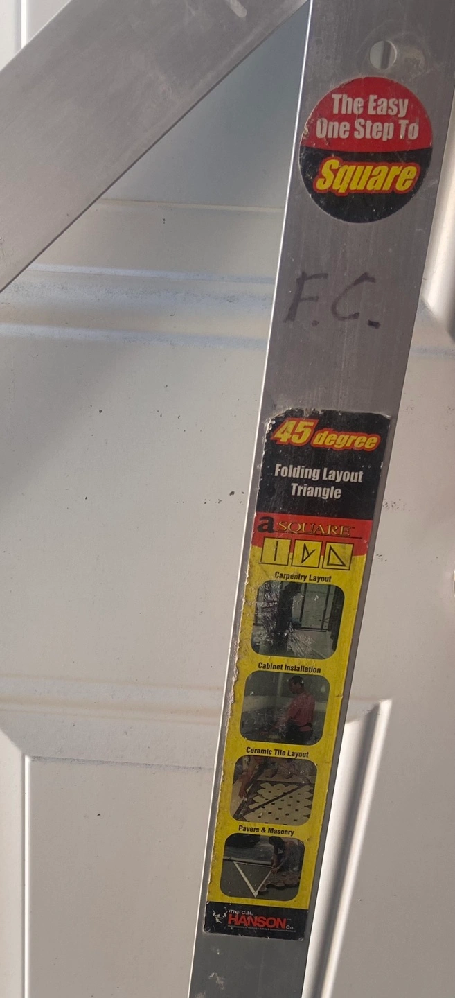 20Folding layout triangle. Aluminum construction with a metal carrying handle. Multiple uses including cabinet installation, ceramic tile layout, and pavers and masonry.