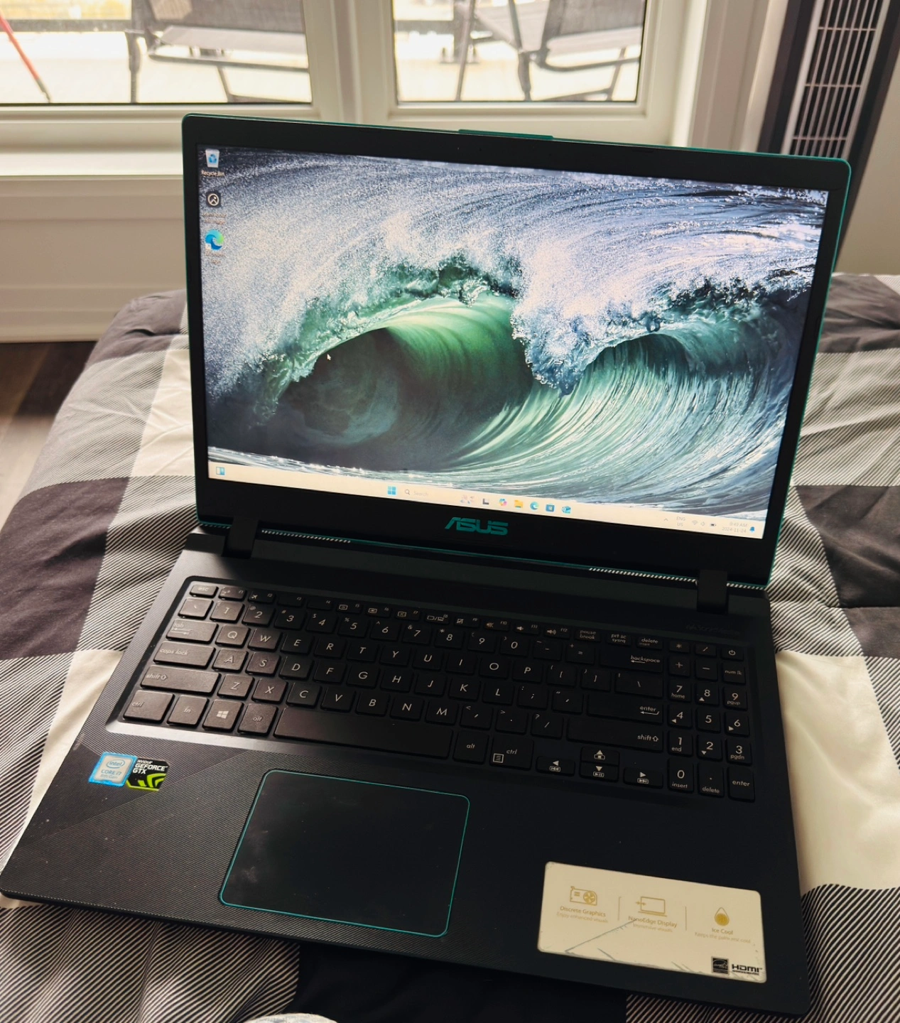 Asus Vivobook X560UD 8th Generation intel Core i7 @2.5GHz 8GB RAM 15.6 inch 1080p LED display 256 GB SSD/ 1TB HDD 4GB DDR5 Nvidia GeForce GTX1050 SonicMaster Audio 3 USB ports, standard HDMI port Updated to Windows 11 Laptop charger included Color: Black with blue accents. Condition: The laptop has been used. Minor scratches and wear, but otherwise in good condition. Selling as is. Contact Prashan for more details. Cash only please.