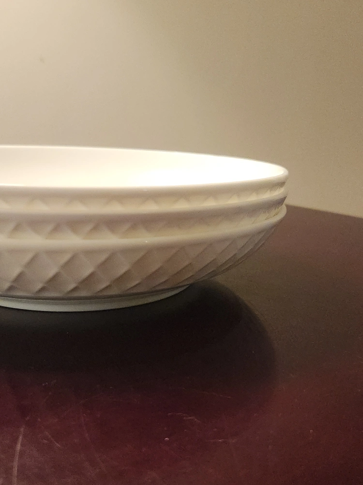 Set of three white serving bowls with diamond geometric design