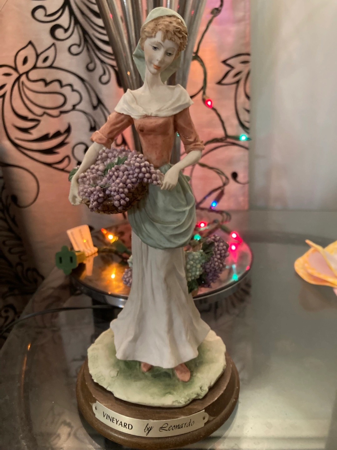 Porcelain figurine of a Lady holding a basket of grapes. Made by Leonardo.