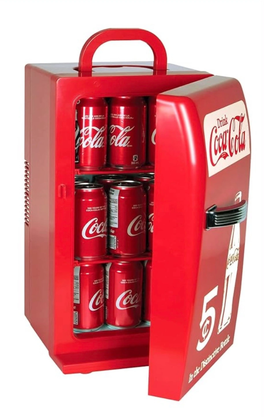 Generous 22L (23 qt) Capacity: This fun and functional mini fridge with two removable shelves holds up to 18 standard soft drink cans, making it the ideal beverage and snack fridge for a dorm, office, or games room.