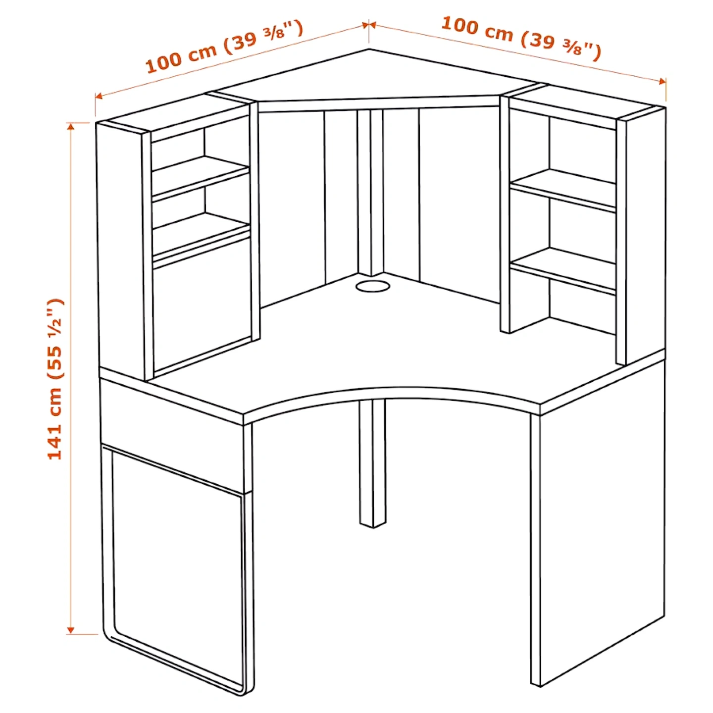 - Black corner desk with shelving units. The chair is NOT included. - IKEA product. - Has been disassembled. - some screws are missing. (check at IKEA if the sell it) - Fits in any car size. - Catalogue is available in electronic format. - Only ONE desk is available for sale. Sold for $229 at IKEA.