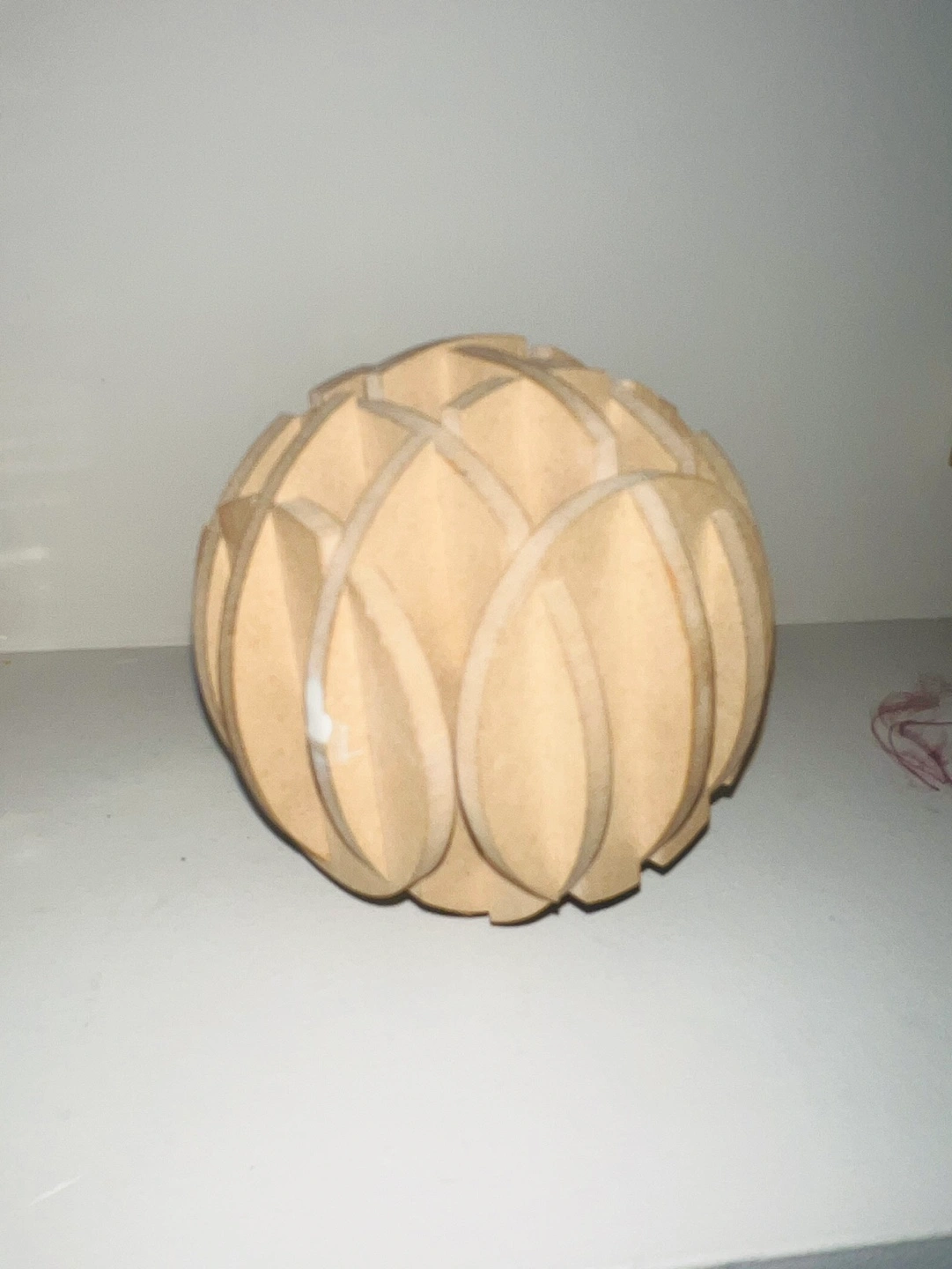 Wooden decorative ball, intricately carved with a unique geometric pattern. Perfect for adding a touch of natural beauty to your home decor.