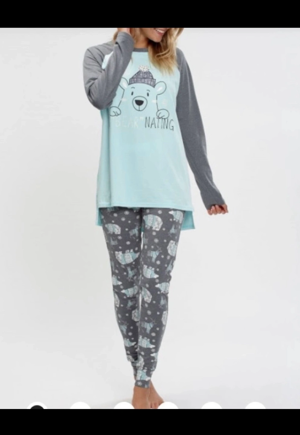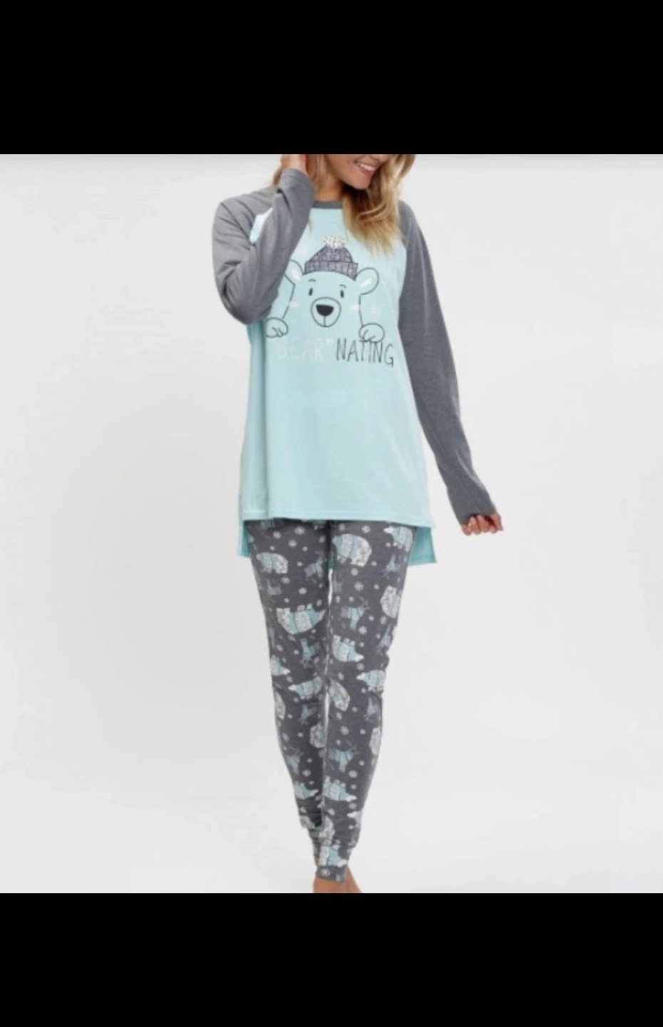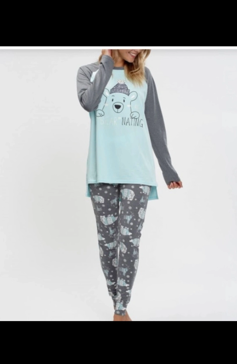 Women's pajama set featuring a blue top with a polar bear graphic, grey sleeves, and grey leggings with a polar bear pattern. Size XS/P. *****Pick up at 1795 St.Clair west. Cash only. Asking Price $25. Low ballers will not be answered my price is fixed. No Refunds / Exchange. If you see it posted on here it means it is still available, so please don't ask.