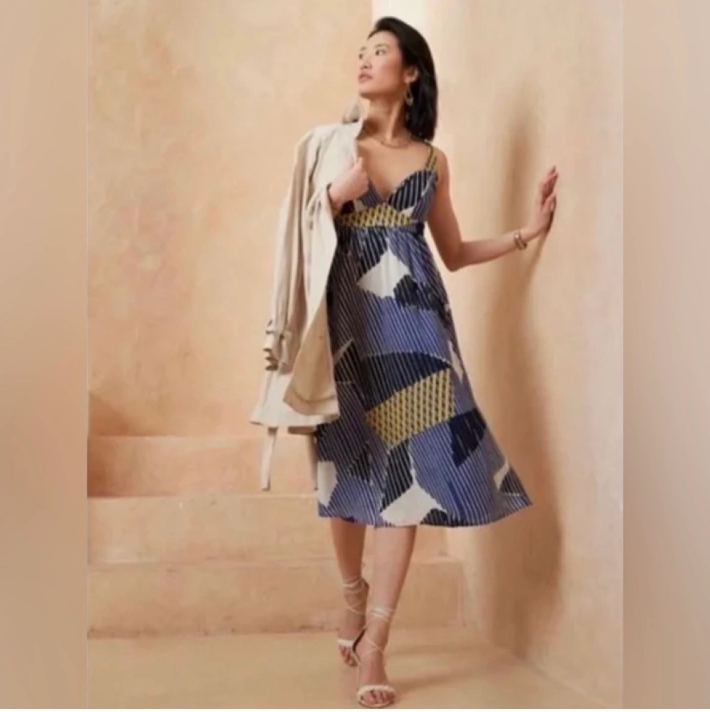 Banana Republic Factory summer dress. It shows a lot of cleavage as I’ve got bigger boobs and I didn’t love the look on me. But a very classy dress that can be dressed up or down.