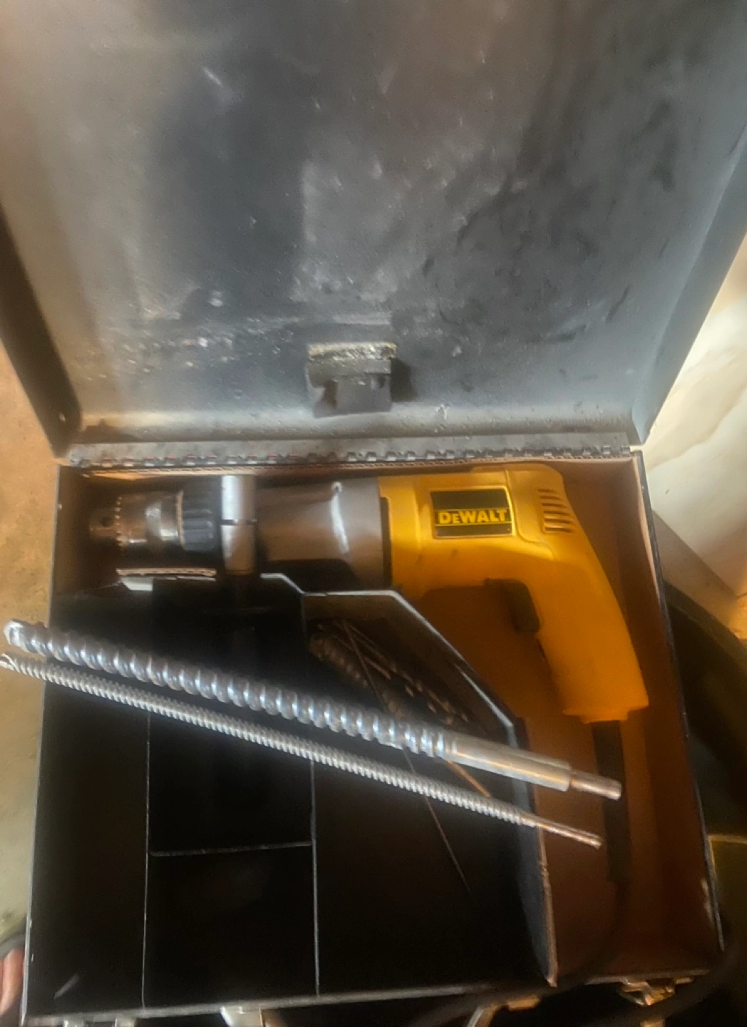 20DeWalt drill and accessories in a carrying case. And masonry drill bits