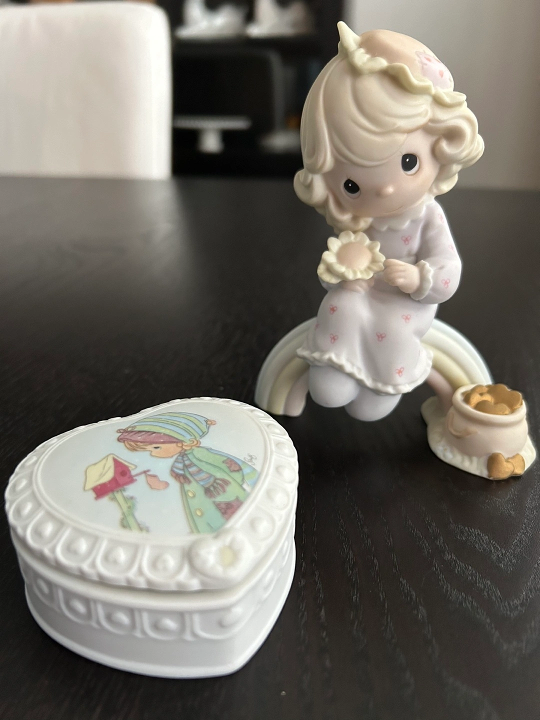 1994 Dreams Really Do Come True figurine measures 5 inches high x 4 inches wide $20 1996 December Heart Trinket Box 2.75 inches x 2.75 inches x 1 inch high $10 Perfect for gifts, room decor, collectors. Priced below collector value for fast sale. In pristine, like new condition. No chips or scratches. From a very clean smoke free home. Pick up Stoney Creek Mountain, Valley Park area.
