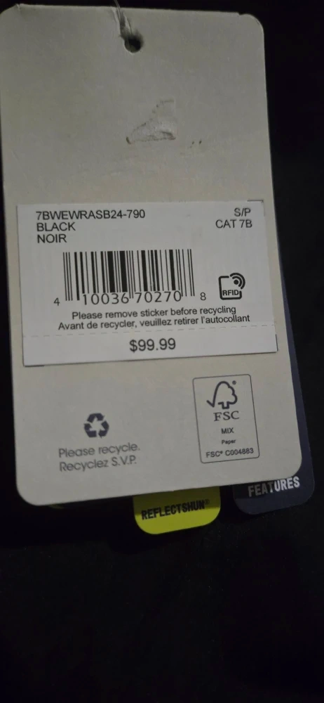 Selling a brand new with tags Wind River Downpour 2L jacket in size small and black. This jacket features a 2-layer fabric shell, under arm venting, adjustable drawcords, and zippered hand pockets. It also has Reflectshun reflective material for enhanced visibility. I bought this for $99.99