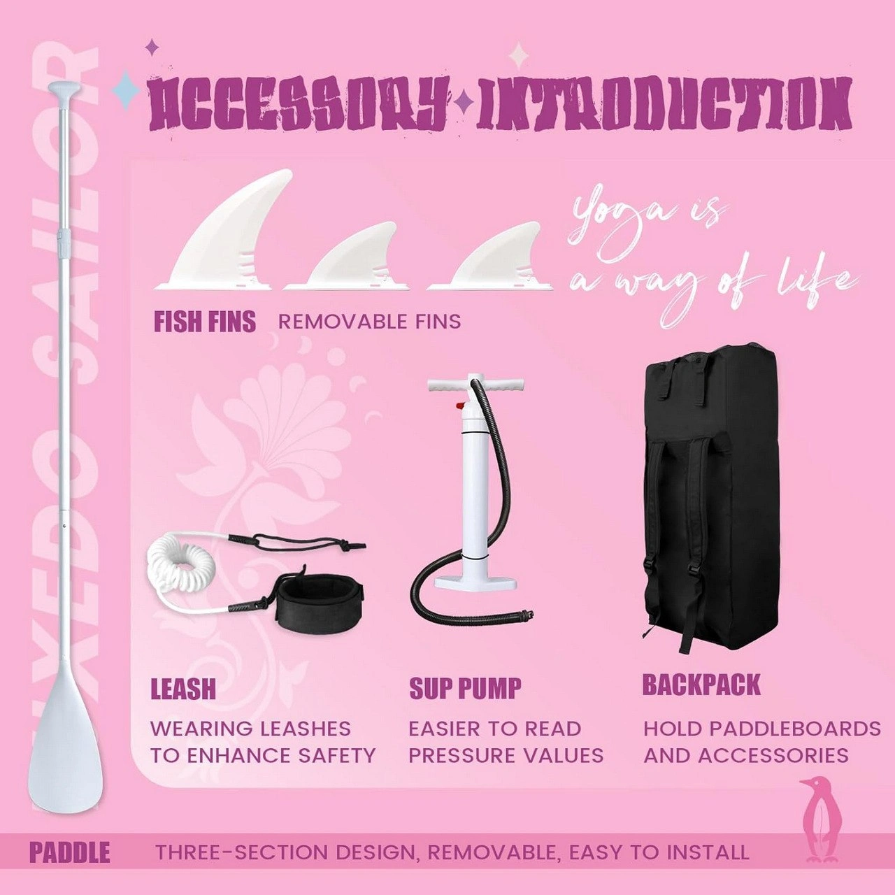 * New, factory-sealed * Size: 10'6"×33"×6" * Non-slip EVA deck mat * Maximum weight - 330 lb * Ankle strap included * 12-15 PSI * Includes paddle, hand pump, removable fins, and backpack * Color: pink, purple, & blue Current Amazon.ca price for this brand new Tuxedo Sailor Inflatable Stand Up Paddle Board Inflatable SUP 10'5"×32"×6" Stand Up Paddle Board for All Skill Levels Included with Board, Paddle, Pump, Fins, Backpack: $279.99. You get this brand new, never used item at a really good price and pickup for free. The item has never been opened, is factory sealed and brand new. Cash only. Pickup in Etobicoke or Mississauga: Email us to make arrangements. FIND MORE GREAT DEALS ON SPORTS AND HOBBIES: https://www.kijiji.ca/o-profile/1044315900/listings/1 +++++ Christmas gift - Christmas present - gift for her - gift for women - gift for men - gift for him - housewarming - stocking stuffer - mother's day gift - valentine's day gift - gift for kids - gift for children - gift for girls - gift for boys - gift for parents - birthday gift - birthday present - Tuxedo Sailor Inflatable Stand Up Paddle Board - 10'6" × 33" × 6" Dimensions - White and Pink Design - Polyvinyl Chloride (PVC) Material - Cute Pink Penguins and Wave Pattern - All Skill Levels - Supports Up to 330 Pounds - Complete Accessories Included - Paddle - Three Fins - Travel Backpack - High-Pressure Pump - Foot Leash - Repair Tool - Upgraded Fins for Easy Installation and Quick Removal - Portable and Travel-Friendly - Suitable for Oceans, Lakes, and Rivers - Perfect for Surfing, Yoga, Relaxing, Racing, and Fishing - Soft EVA Deck Pads for Cushioning and Stability - Abrasion-Resistant PVC Exterior - Sun and Seawater Impact Protection - Four D-Ring Elastic Rope for Secure Package Tying - Safety Air Valve for Fast Inflation - Lightweight and Easy to Carry - Ideal for Adults and Families - Accommodates 1-2 People - Dynamic and Versatile SUP - Great for Water Adventures