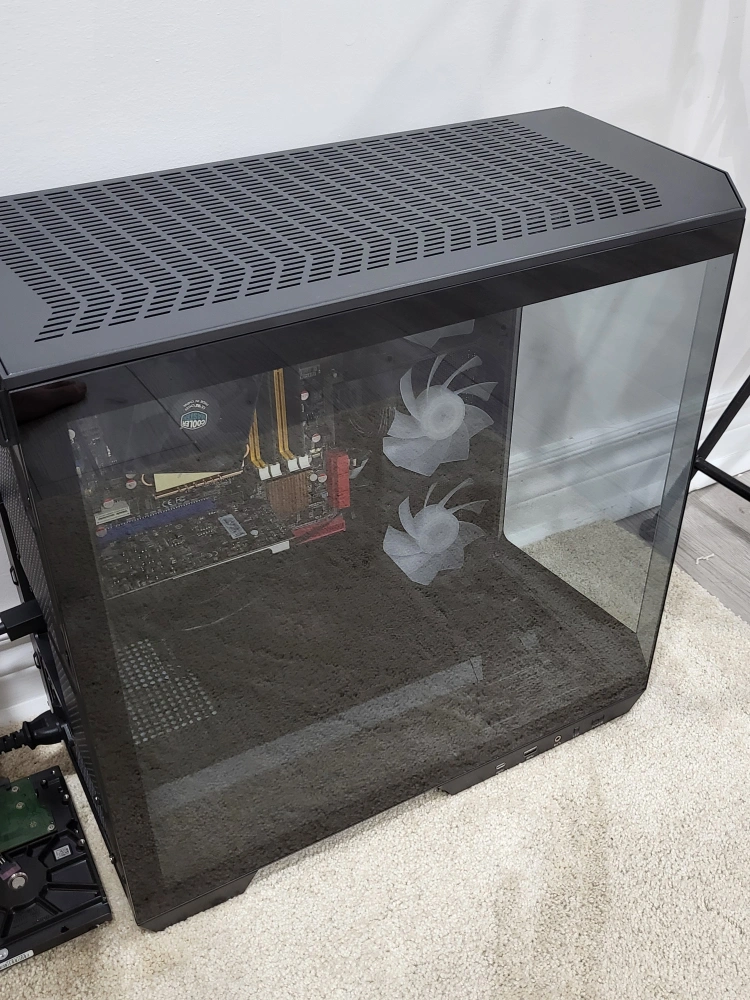 Black PC case with a tempered glass side panel.