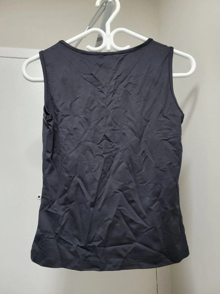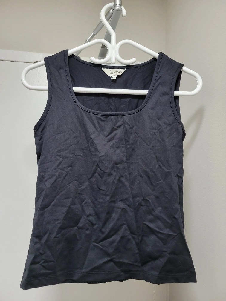 217Black sleeveless tank top. Scoop neck. Made of a stretchy, silky material. Cash only Pick up only