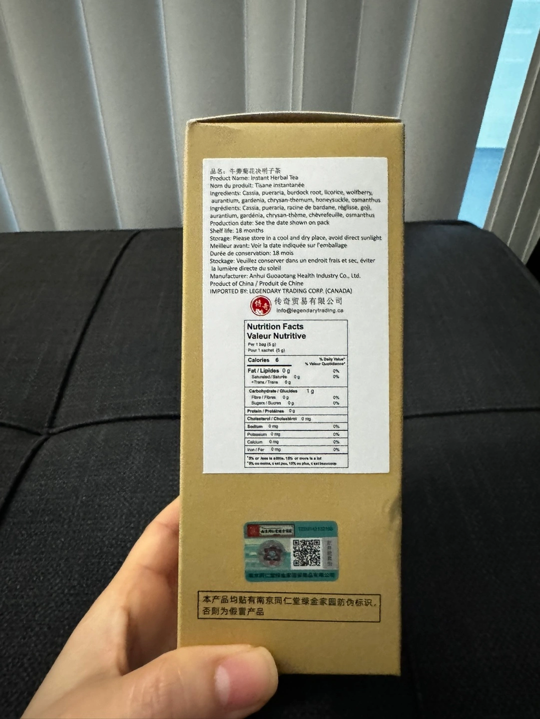 Giving away Tisane Instant Herbal Tea. Contains chrysanthemum, honeysuckle, osmanthus, wolfberry, licorice root, etc. individual tea bags at 5g with 30 bags in a box.