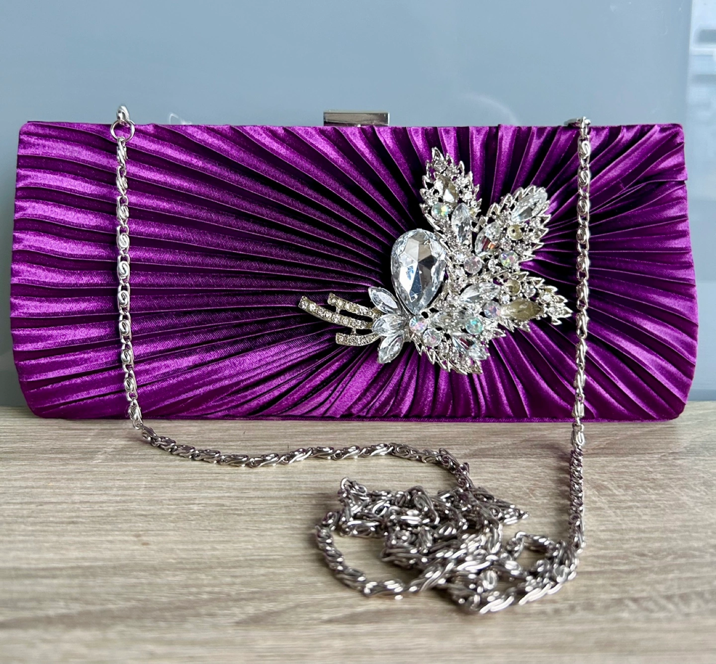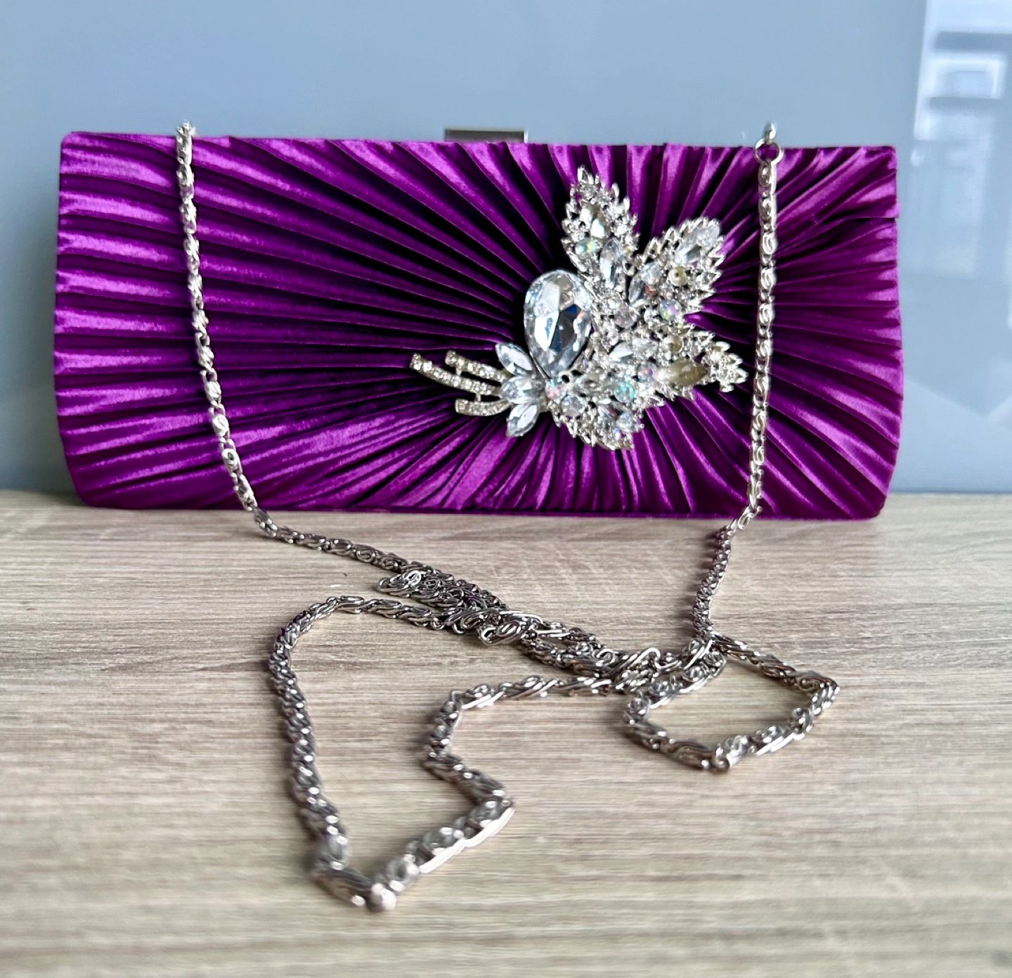 Satin purple and silver crystal evening purse π
