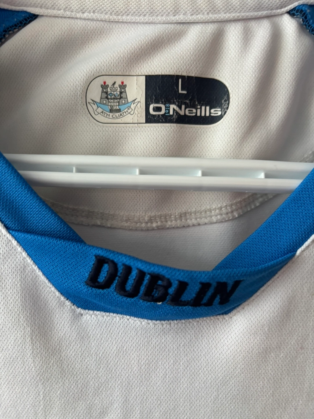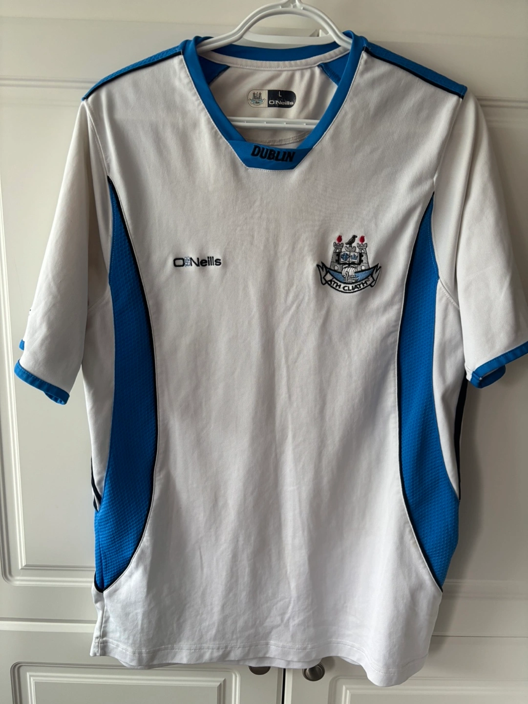 Dublin GAA White jersey with blue accents. Size L. One sweat shirt, never worn, collectables,