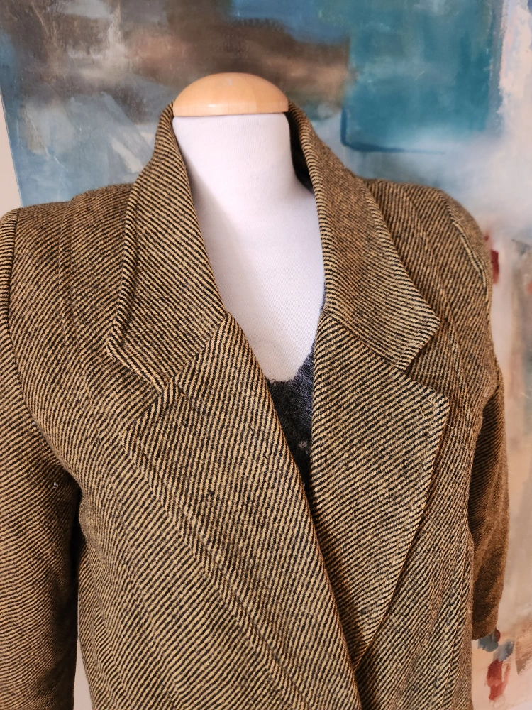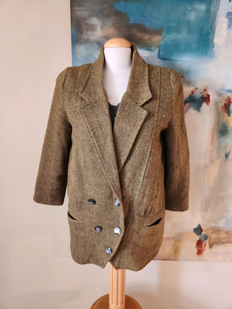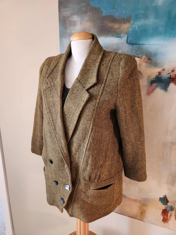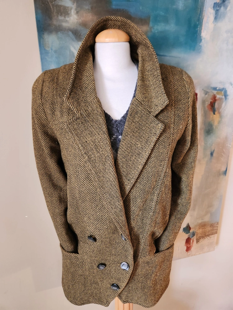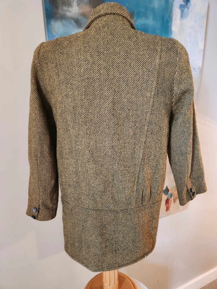 Jazzy vintage style! This wool tweed drop waste coat has a fantastic euro 80's vibe, comfortable, stylish and warm this vintage size medium is a great wool coat for this chilly season! WINTER COAT with a double-breasted drop waist closure
