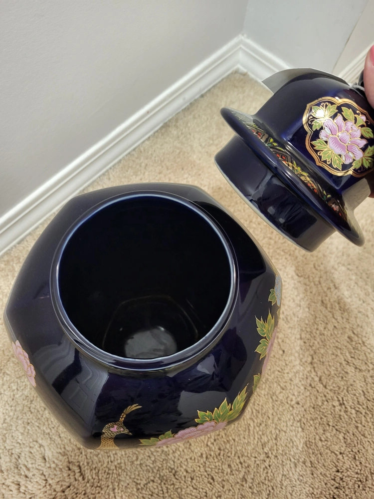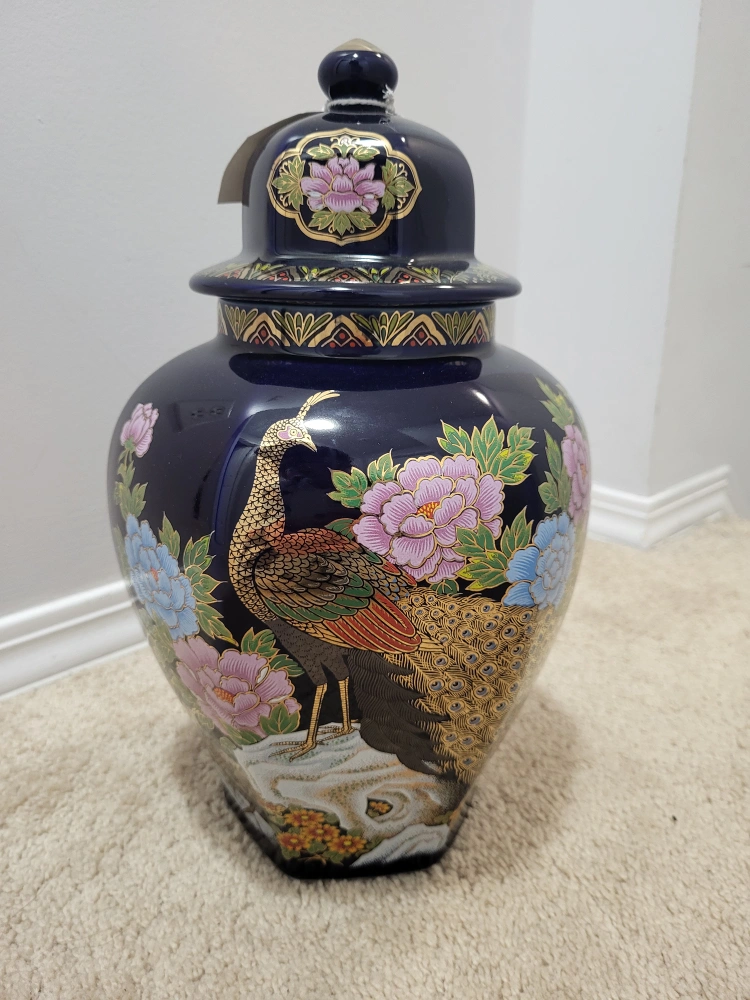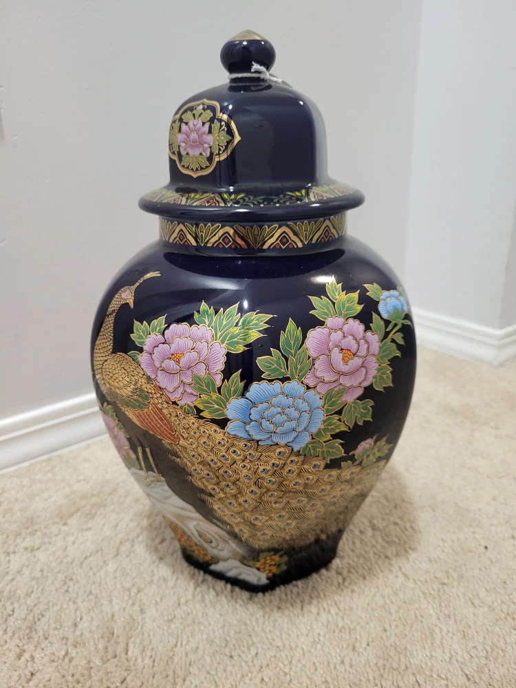 Vintage Cobalt Blue peacock ginger jar π₯