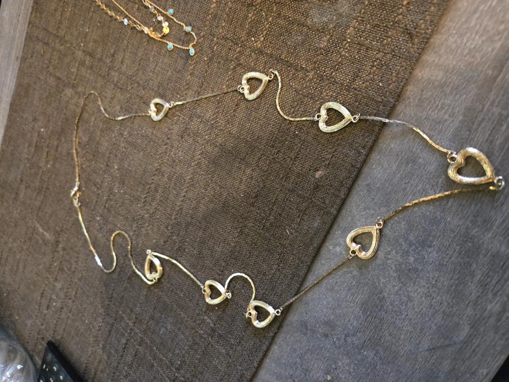 Gold chain necklace with heart-shaped charms. freecycle