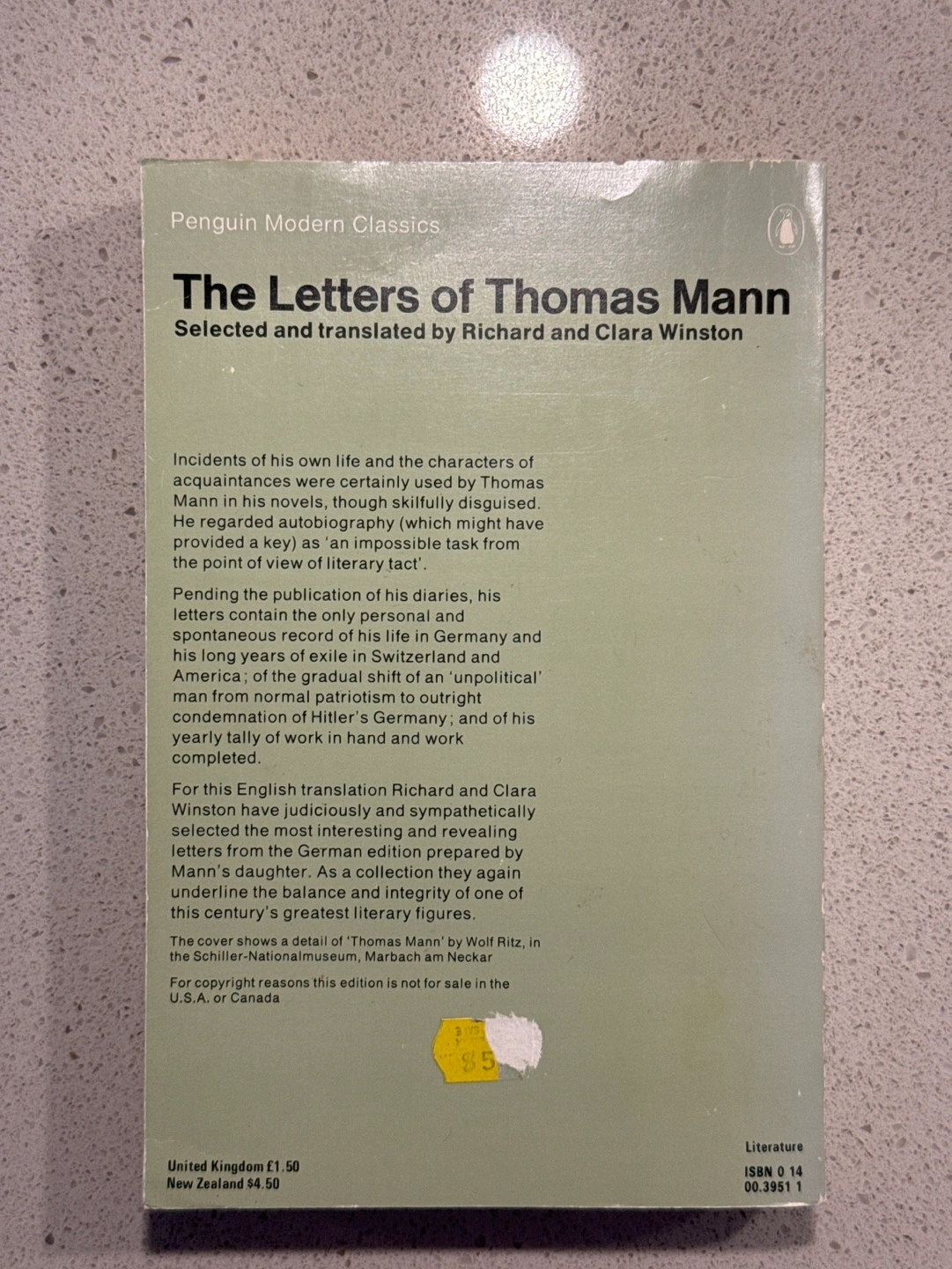 Paperback book in the Penguin Modern Classics series. Selected and translated by Richard and Clara Winston. Includes a brief biography of Thomas Mann. Some wear to the cover.