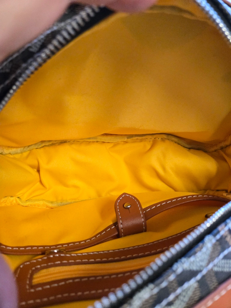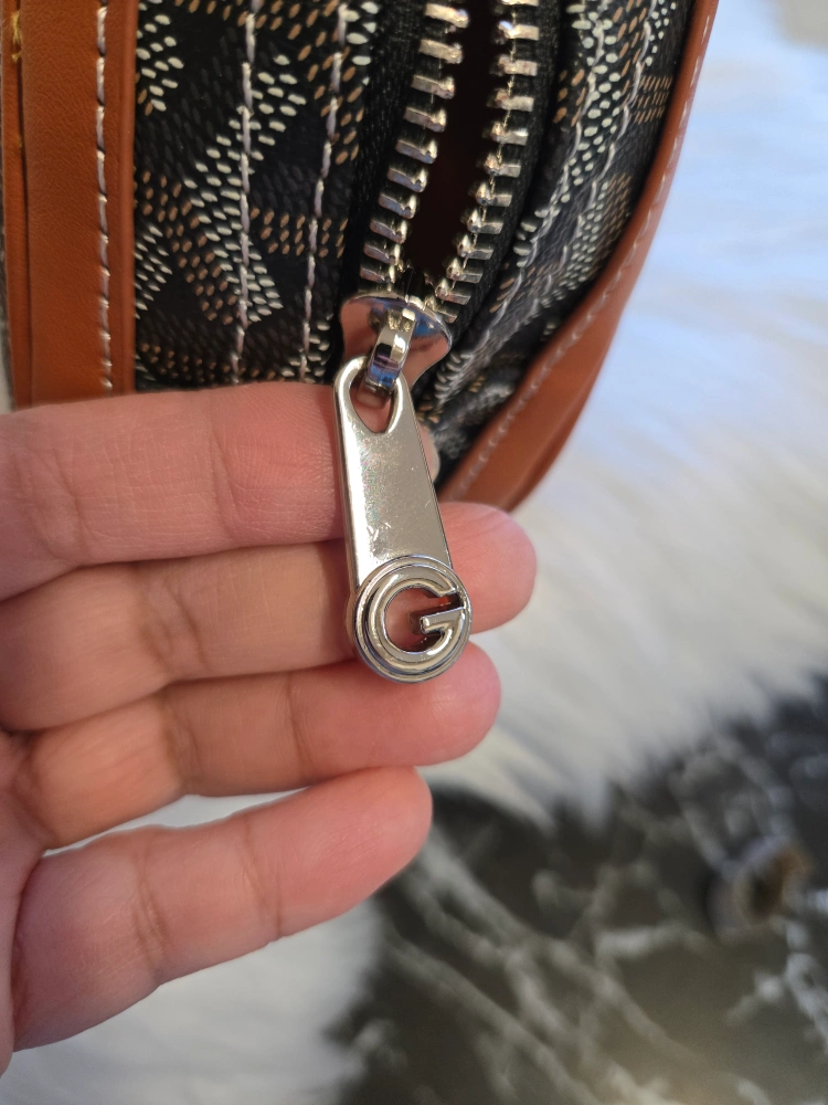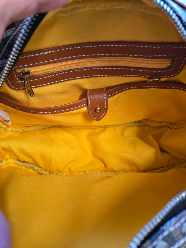 Small handbag with top handle and detachable shoulder strap. Features a zipper closure, lots of compartment inside, new