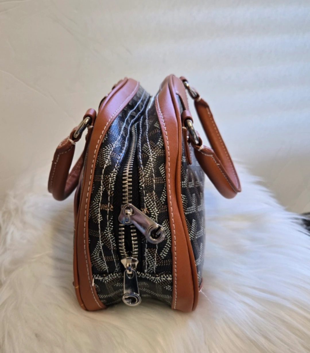 Small handbag with top handle and detachable shoulder strap. Features a zipper closure, lots of compartment inside, new