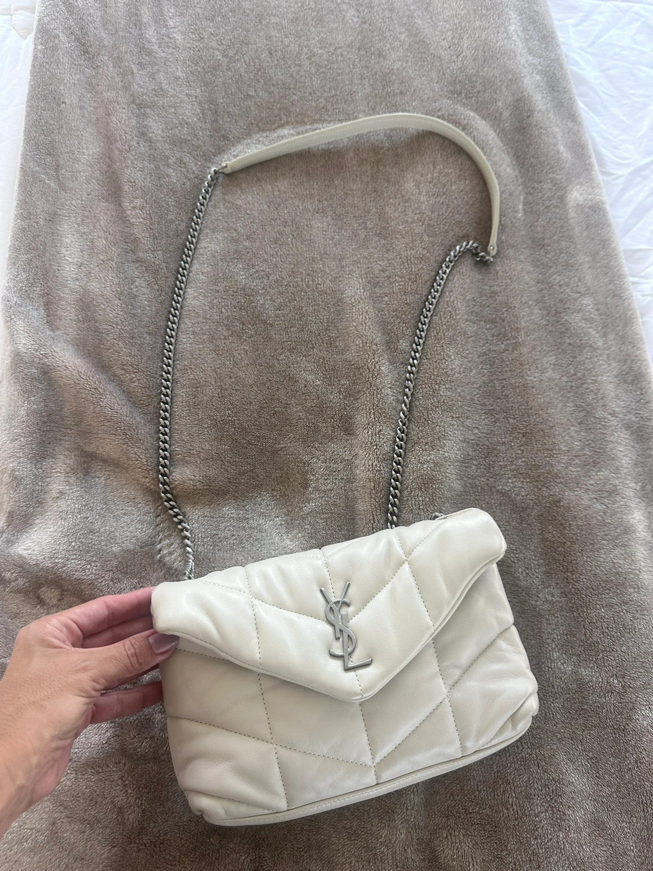 YSL White Small puffer loulou shoulder bag like new. Used once. That’s a 2,500 in store