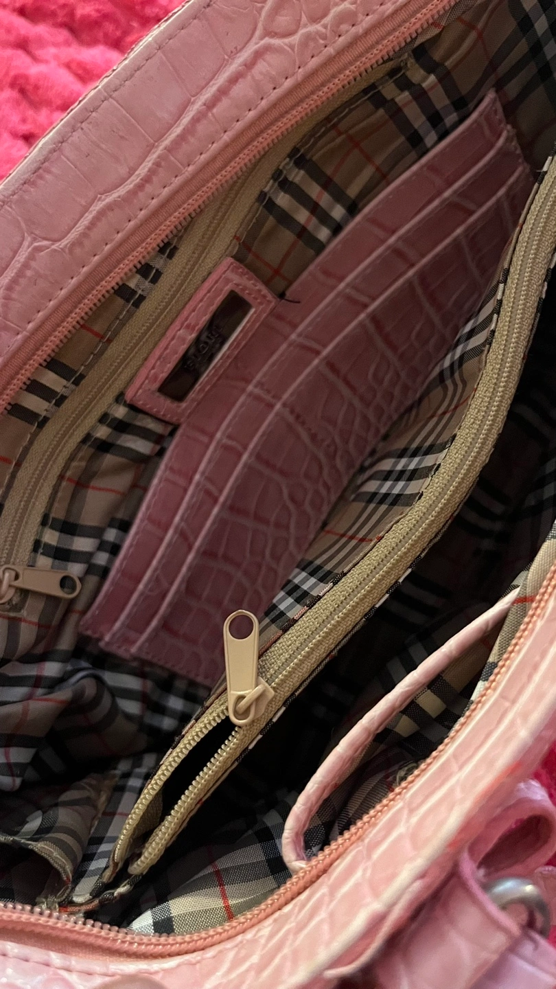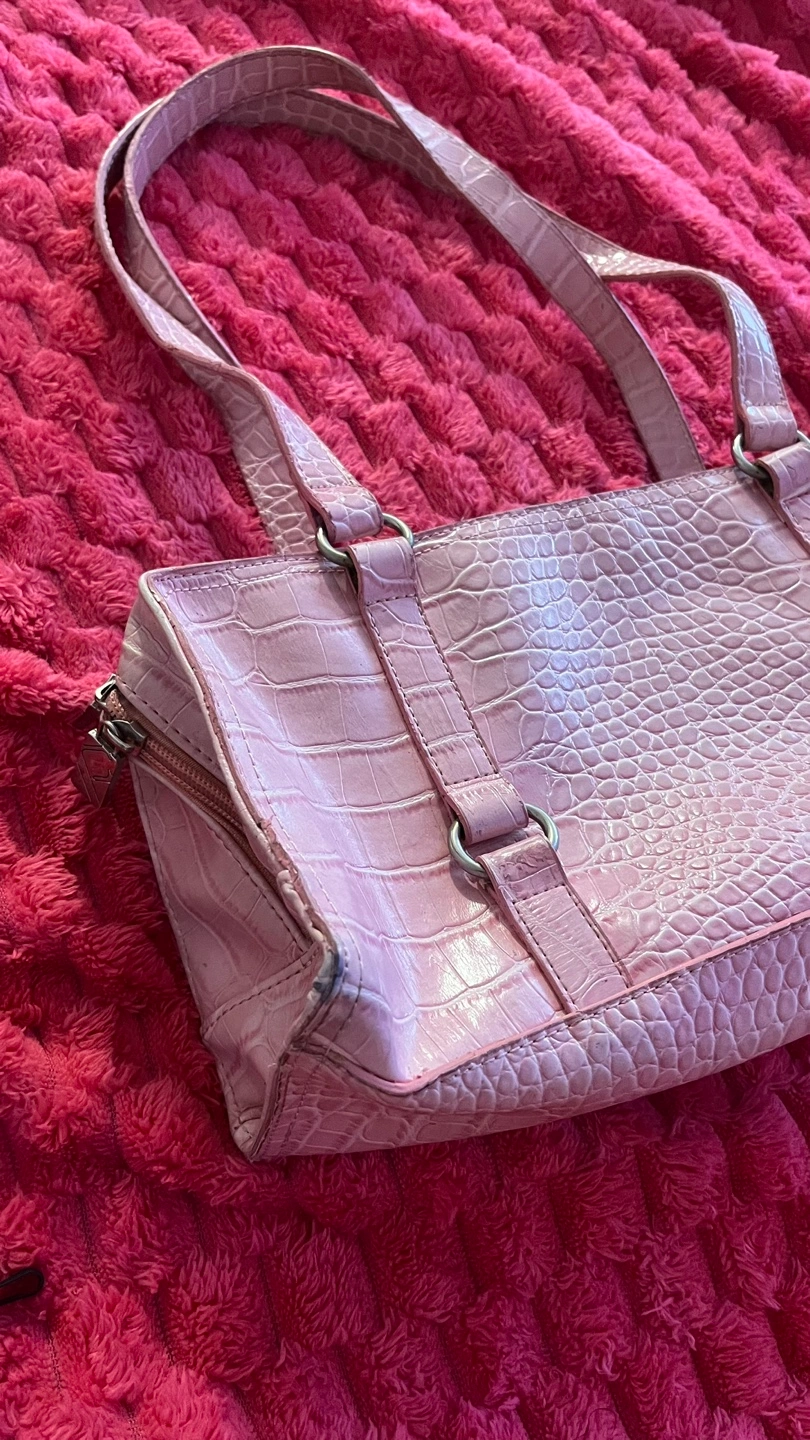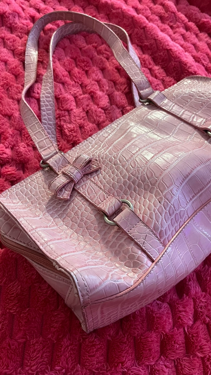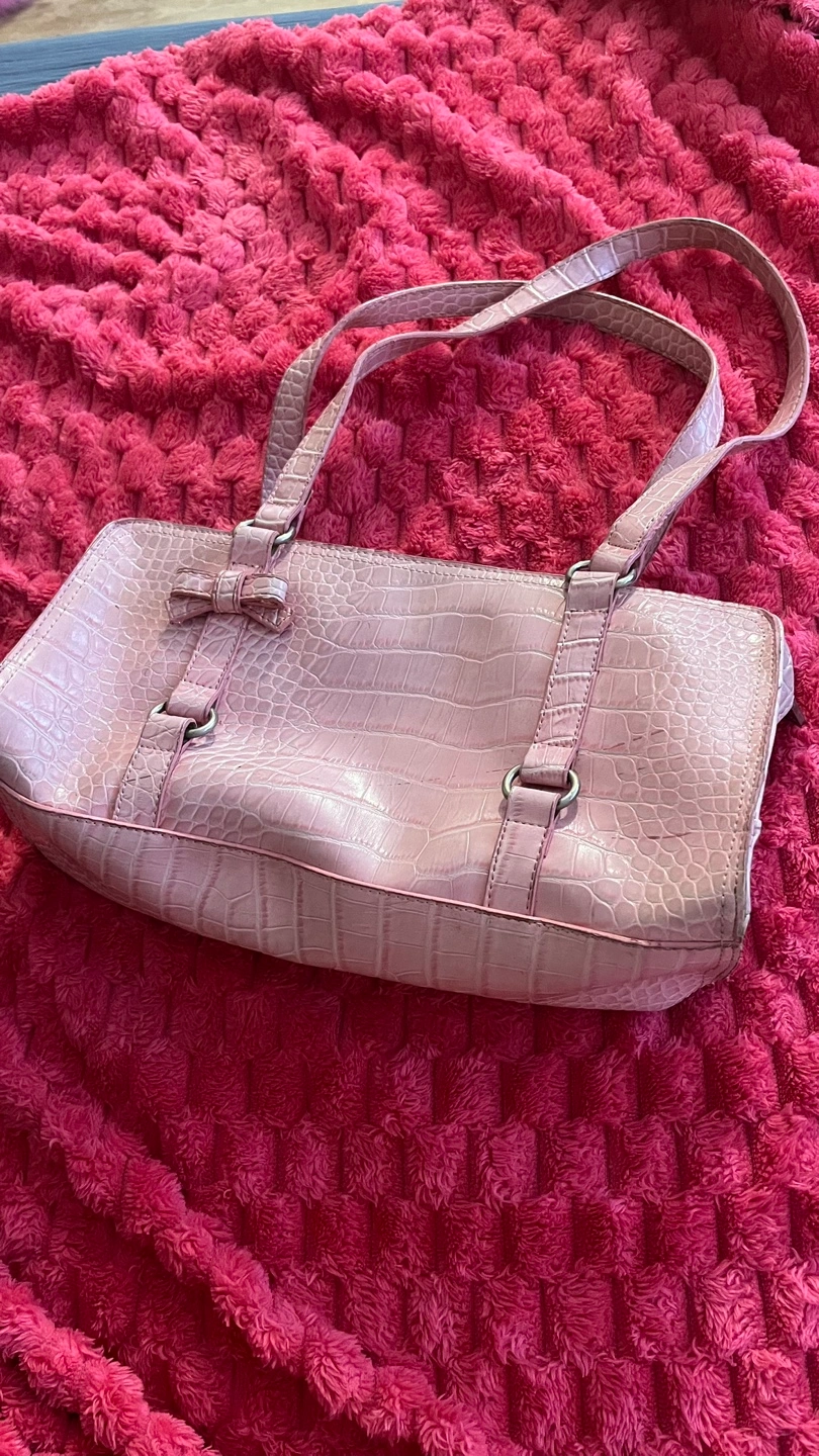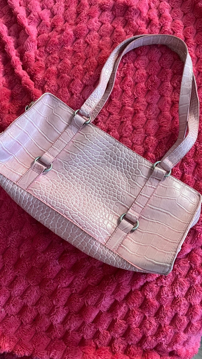 Pink handbag with crocodile-embossed finish. Features two top handles and a double-zipper closure. Has a lot of pockets inside. A few signs of wear but overall good condition. Let me know if interested thx ππ π₯ Bundle items (3 or more) for discounted price π₯