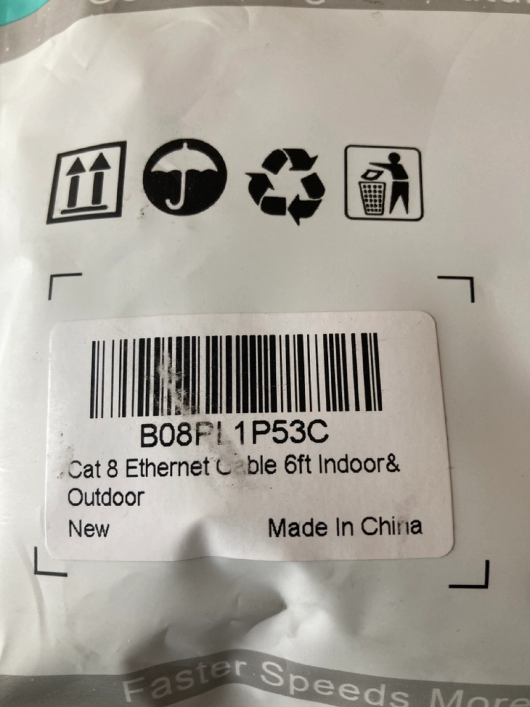 New Cat 8 Ethernet cable, 6ft long. Indoor and outdoor use.
